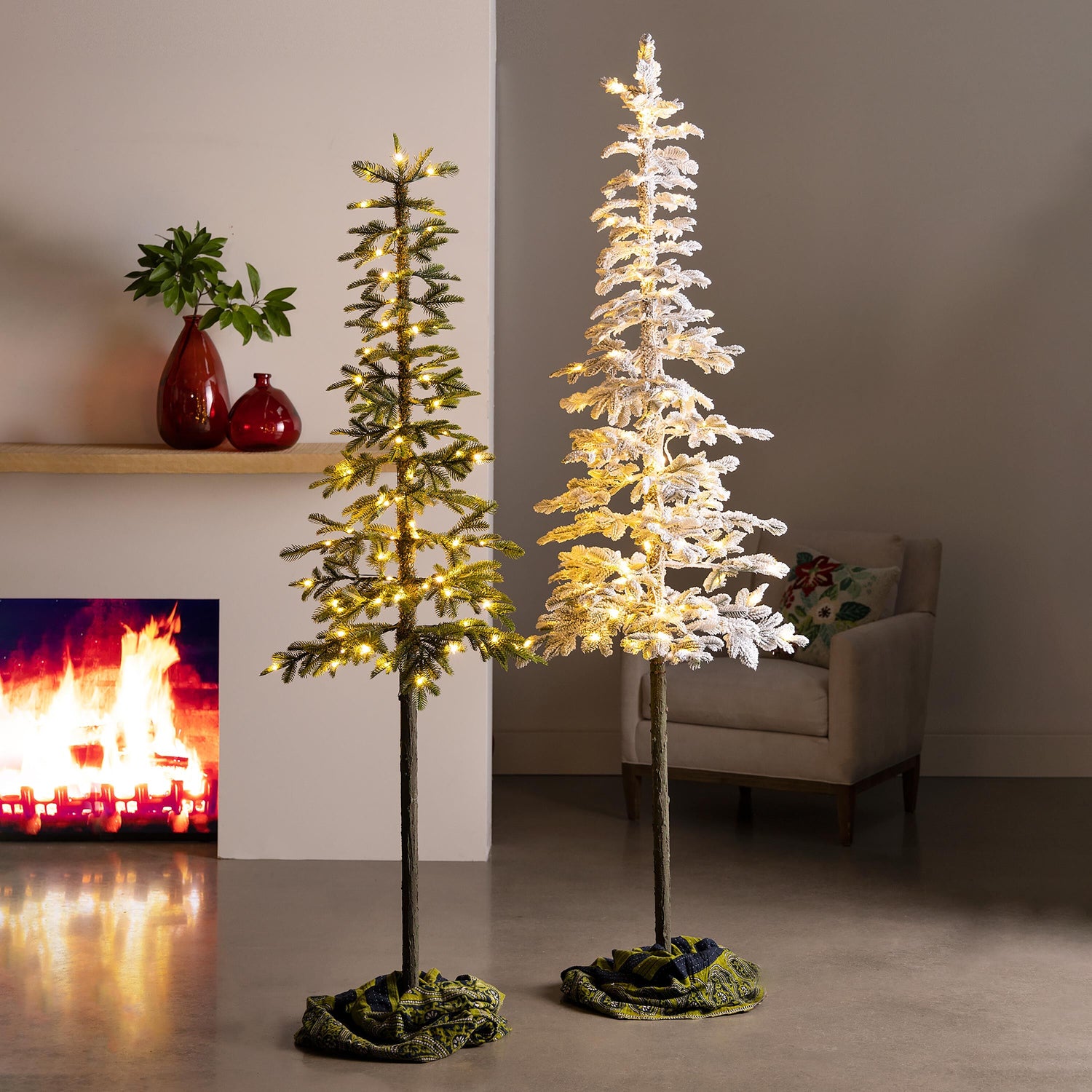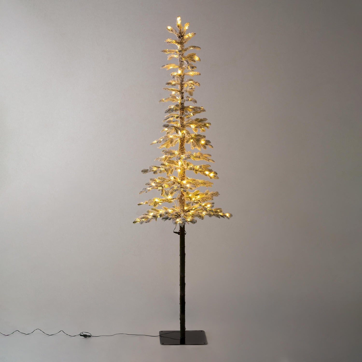 Our fantastic Monte Rosa Lighted Flocked Alpine Fir Christmas Tree is a space-saving solution you're going to love. The trim silhouette and graceful downswept snow-covered branches make it an easy, elegant addition to any home.
