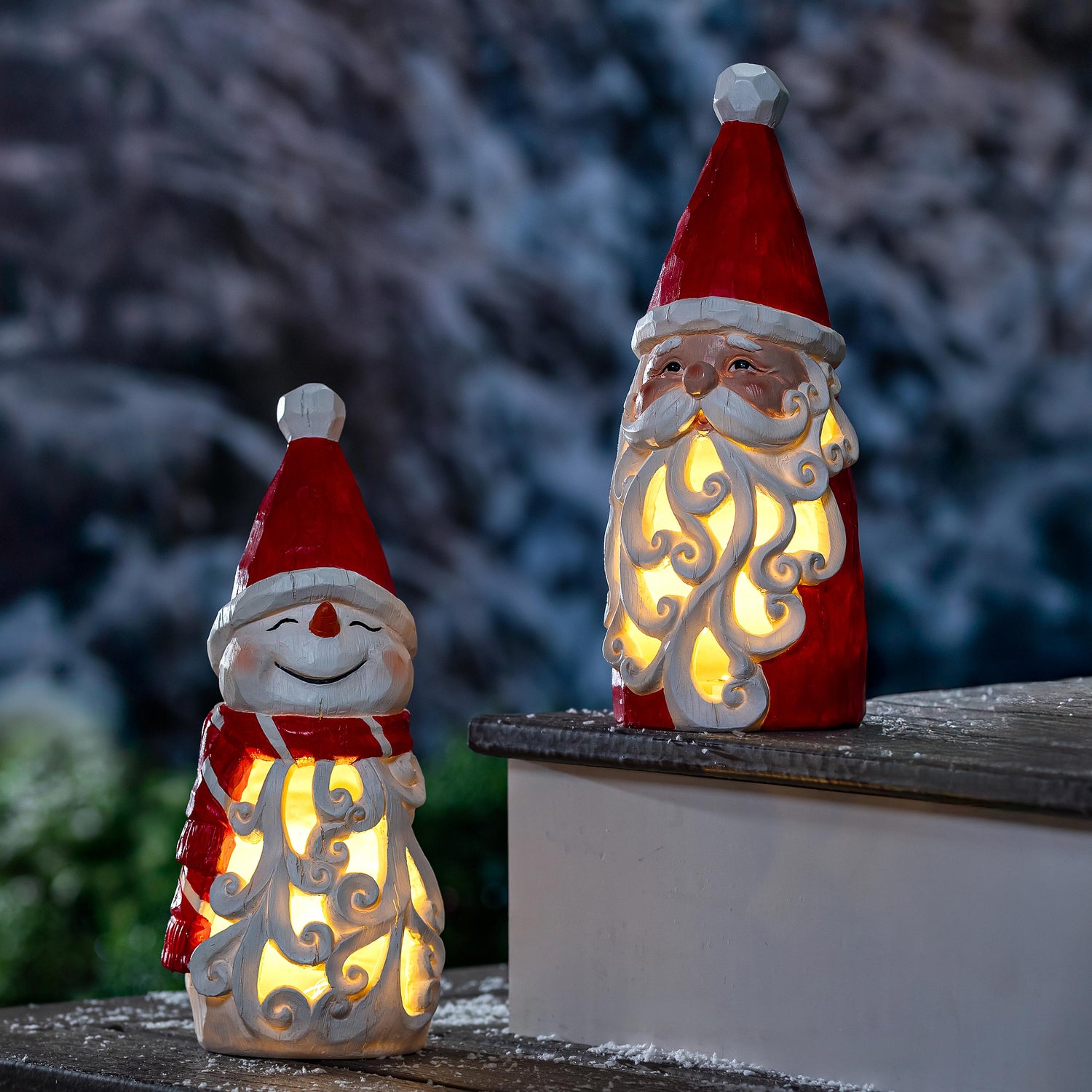 Elevate any garden or yard into a captivating outdoor gallery with this statue. It features an adorable Snowman with elegant cutouts. Our statues help merge nature’s beauty with art to create a timeless and enchanting space. It lights up and casts a soft glow during the night for an added touch of whimsy. This piece is made from durable materials, so it's outdoor safe and weather resistant. It makes a great gift for anyone who loves to turn their home into a winter wonderland. Requires three AAA batteries, not included and has a 6 hours on/18 hours off timer function.