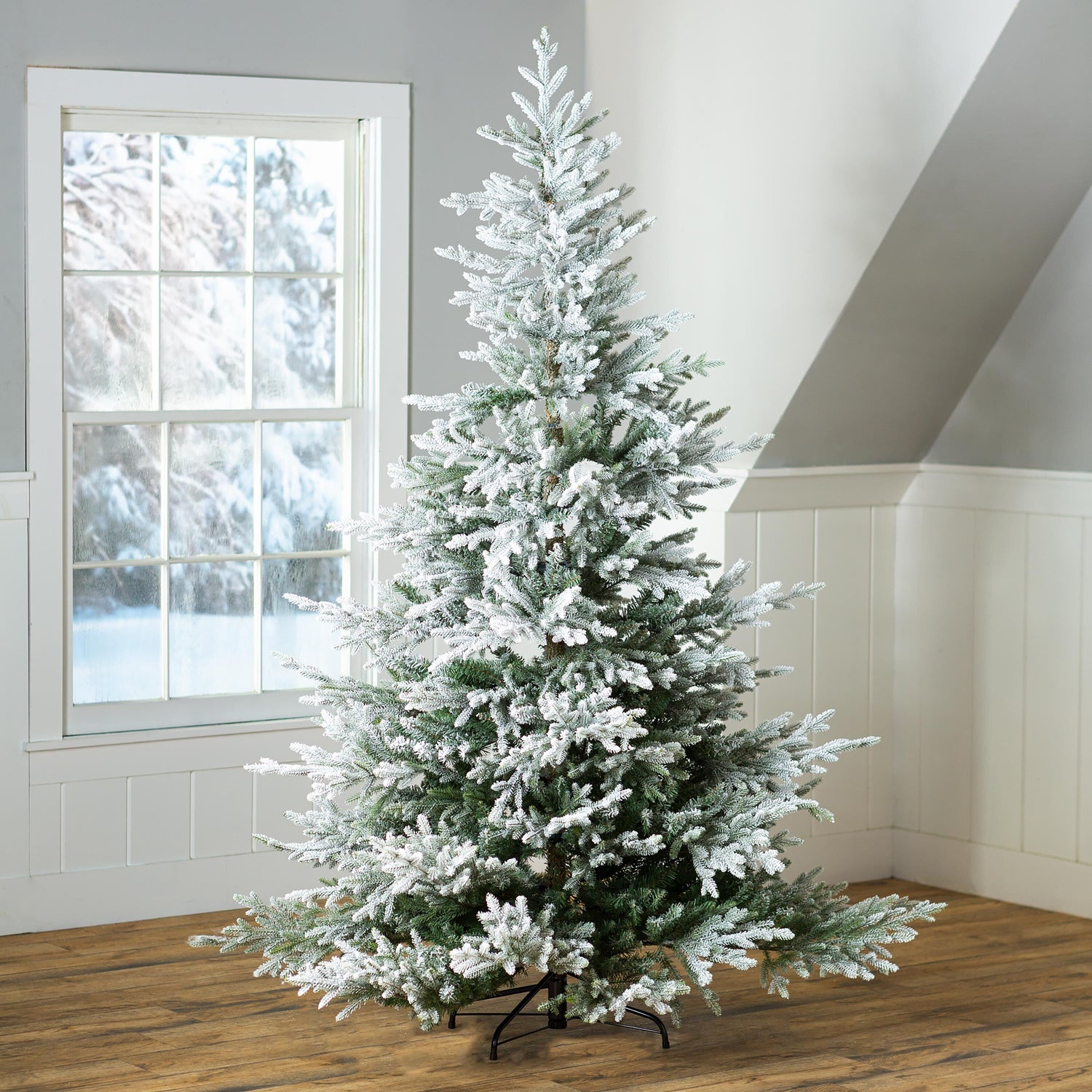 • Amazing faux Flocked Spruce Tree with all the beautiful qualities of a snowy fresh-cut tree