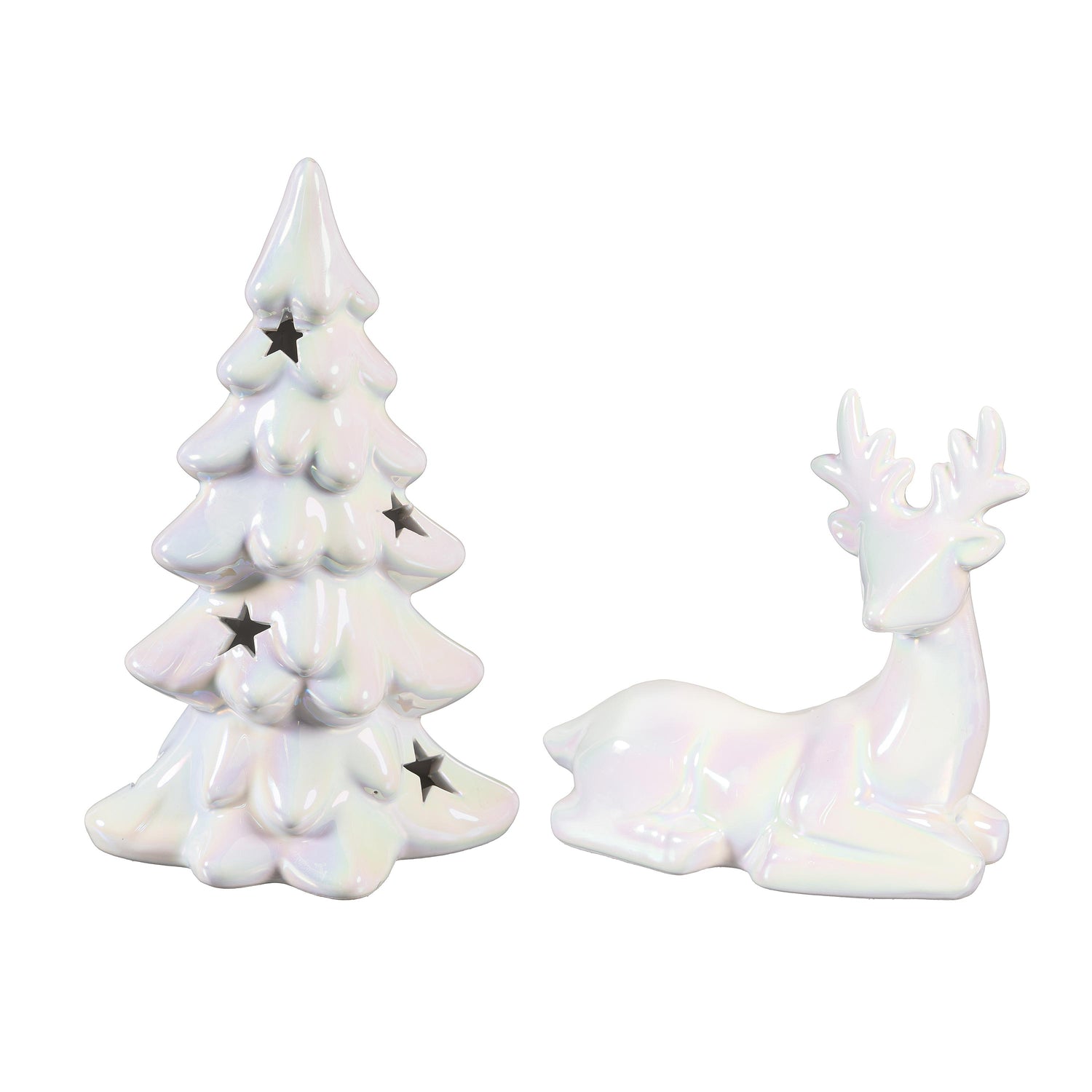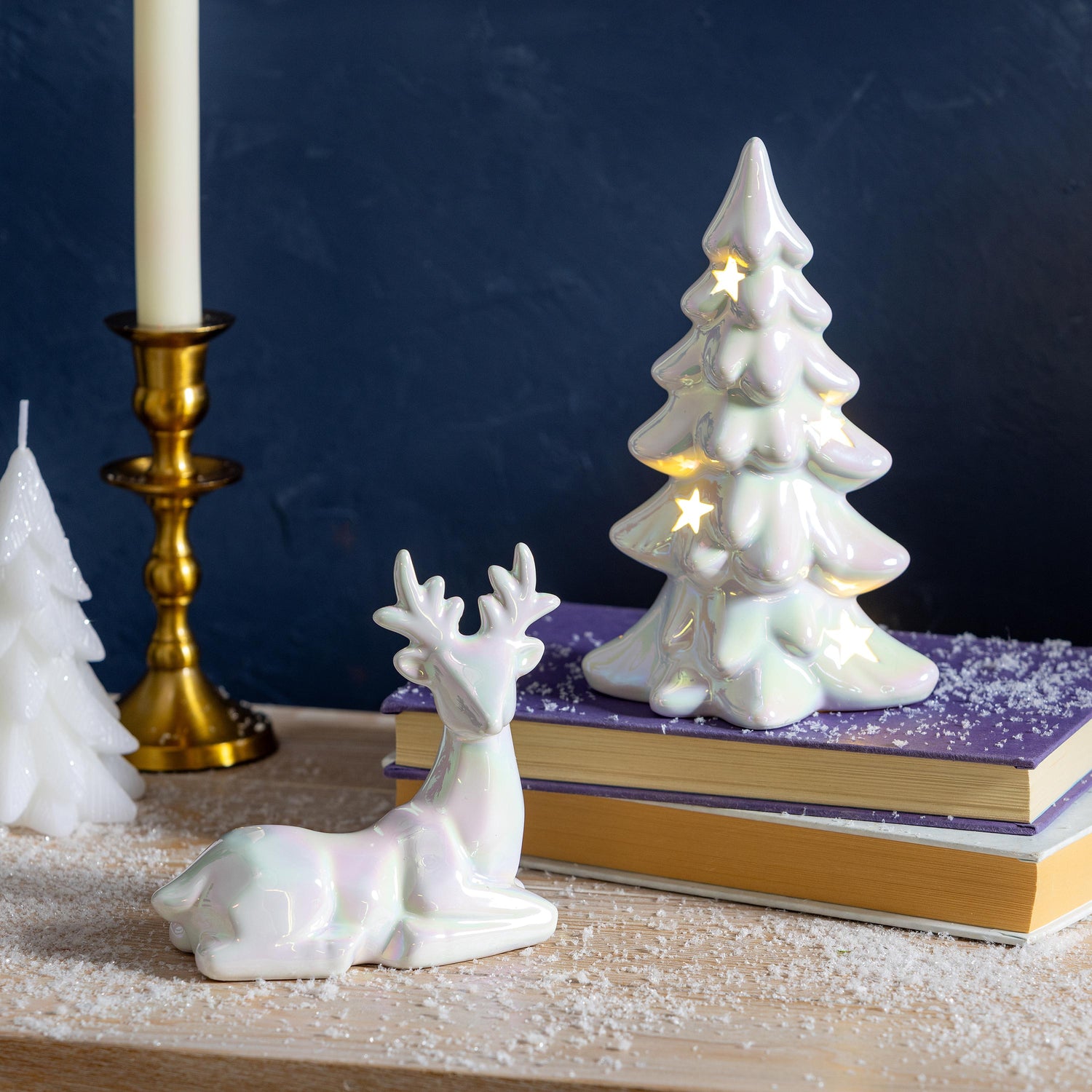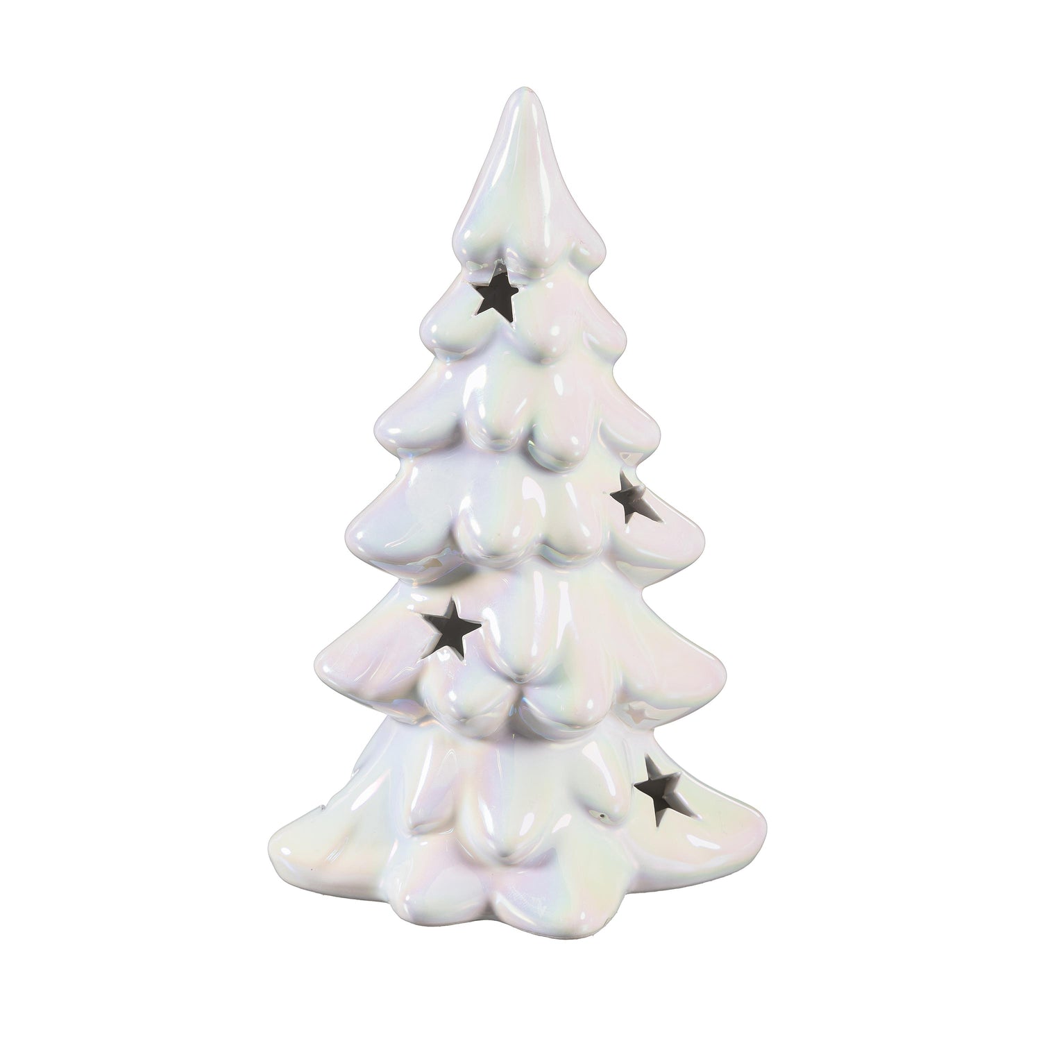 Season to Sparkle LED Table Décor Ceramic Iridescent Tree with Star Cut Outs, Set of 2