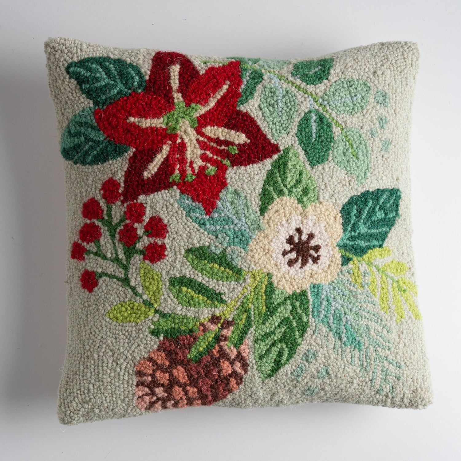 A festive pillow is a lovely accent that instantly adds holiday cheer to your home. This square Hooked Wool Holiday Botanicals Accent Pillow features soft, hooked wool and an elegant design of flowers, berries, and a pinecone. Add a tasteful, unique touch to your holiday decor this season, while still embracing all that's festive. Any plant-lover or gardener will love this beautiful take on holiday decor, inspired directly from nature.
