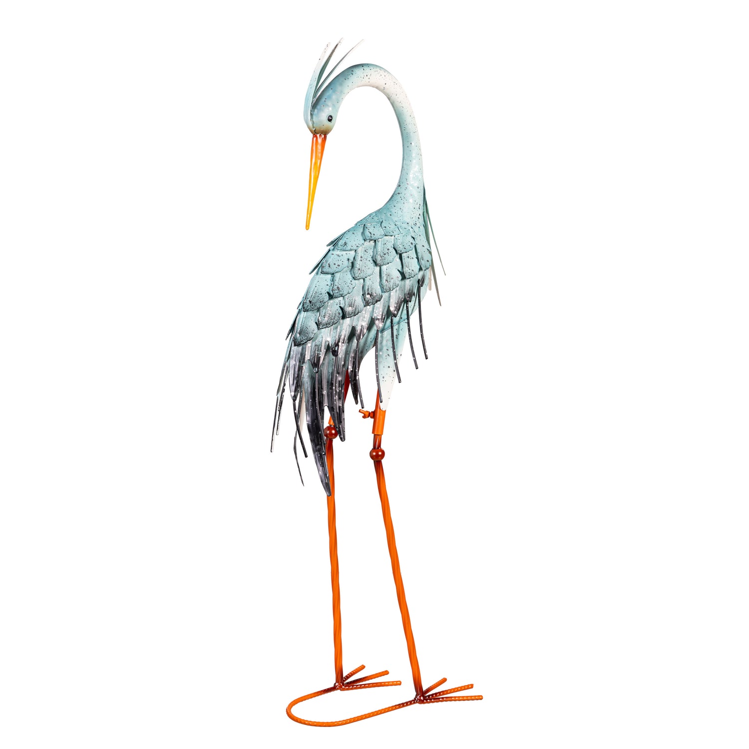 Blue Coastal Garden Statue, Metal Aqua Blue Heron Statue, Looking Down, 35"H