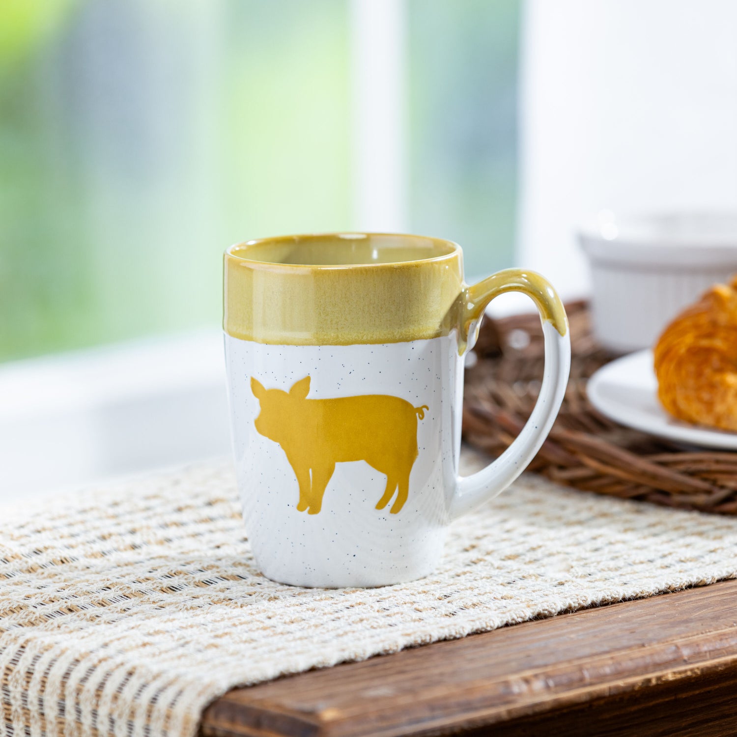 Petal & Plow Coffee Cup Ceramic Artisanal, Farm Pig Yellow, 14oz, Gift Box