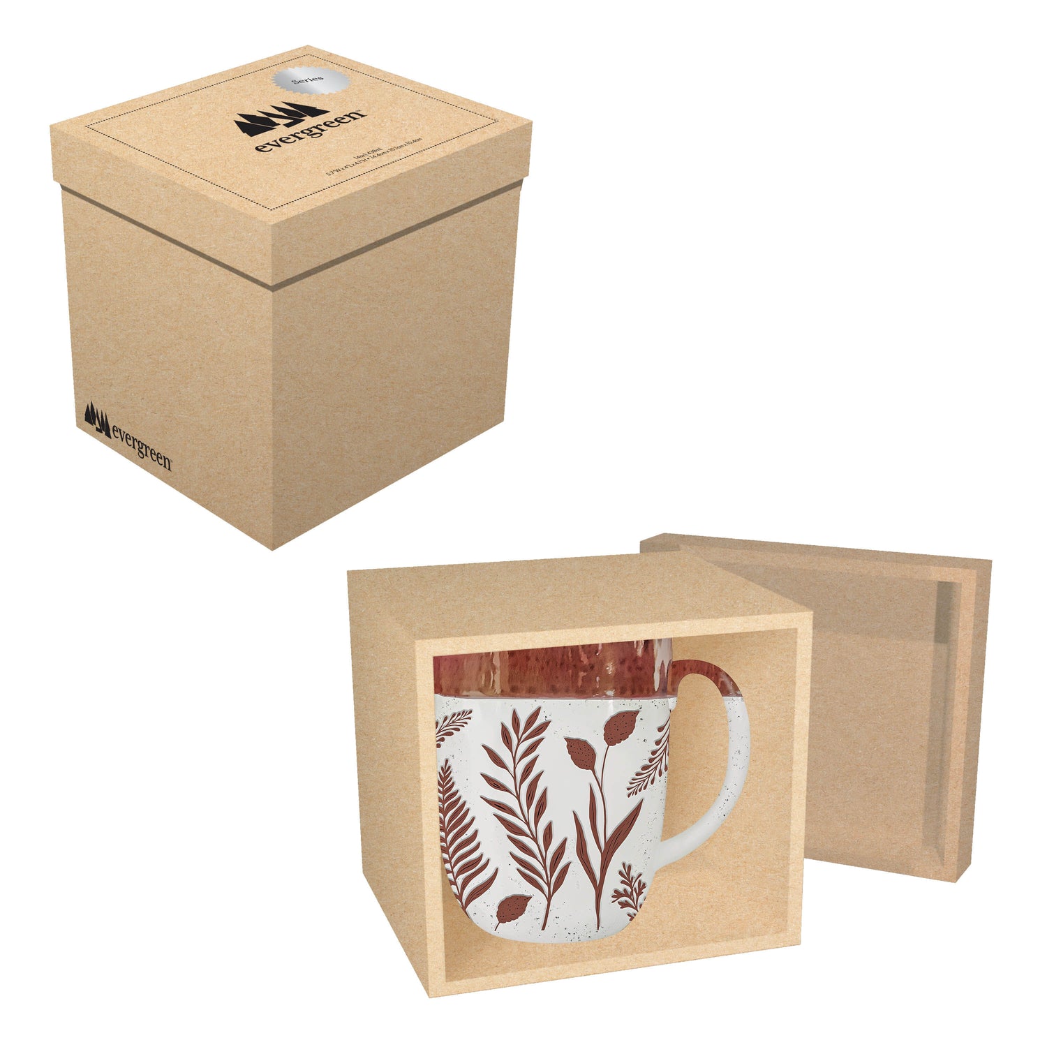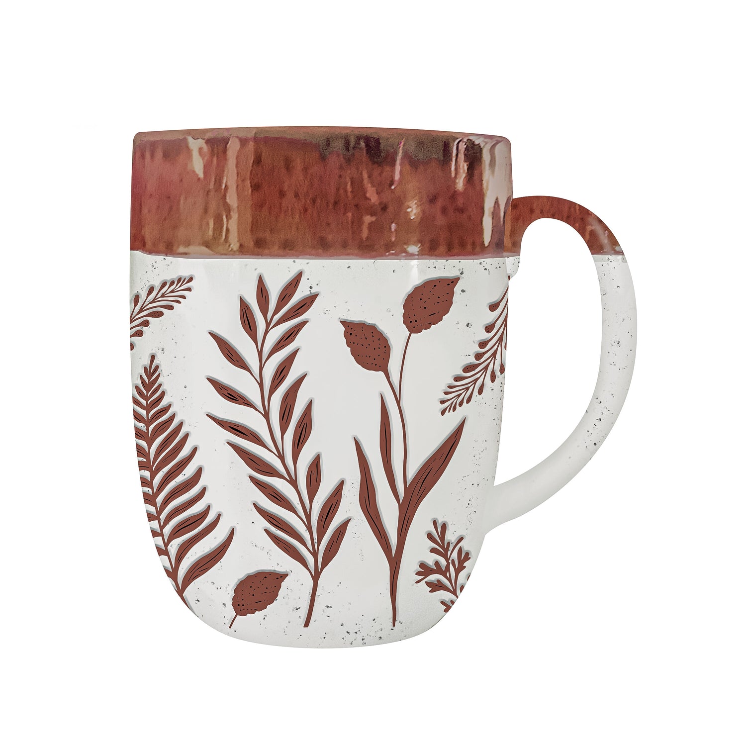 Pollinator Garden Coffee Cup Ceramic Artisanal, Foliage Terracotta, 14oz, Gift Box
