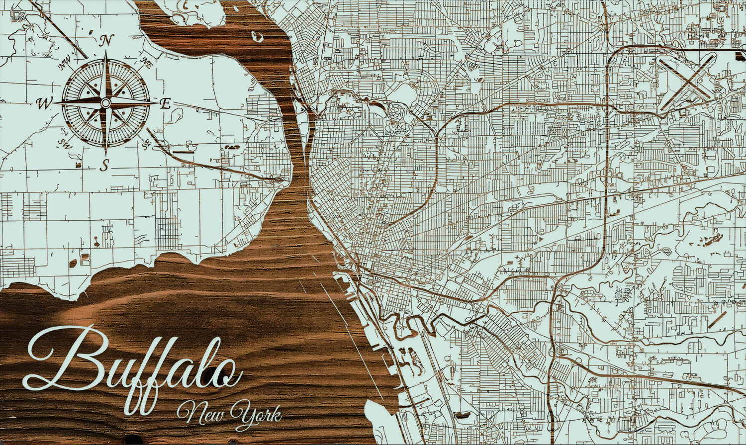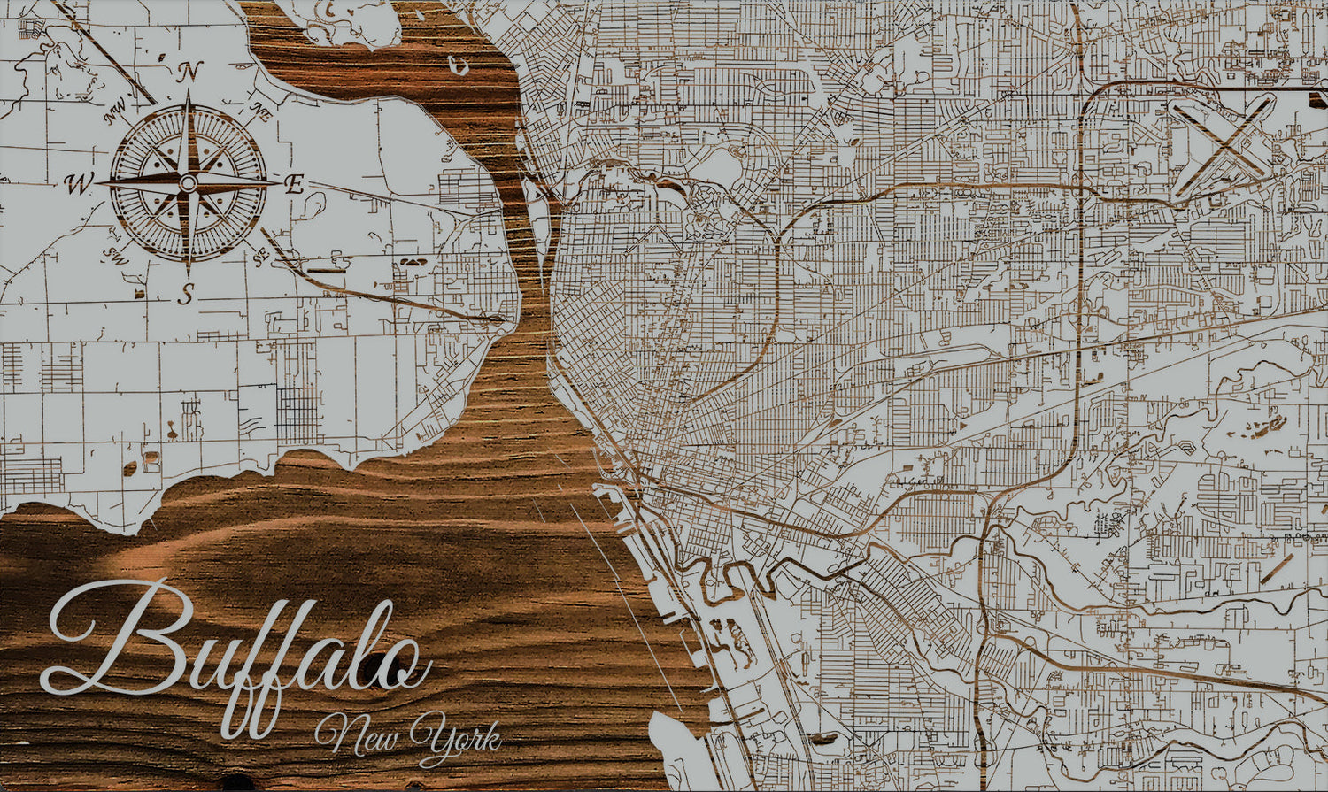 This is a street map of Buffalo, NY designed by Fire & Pine artists.