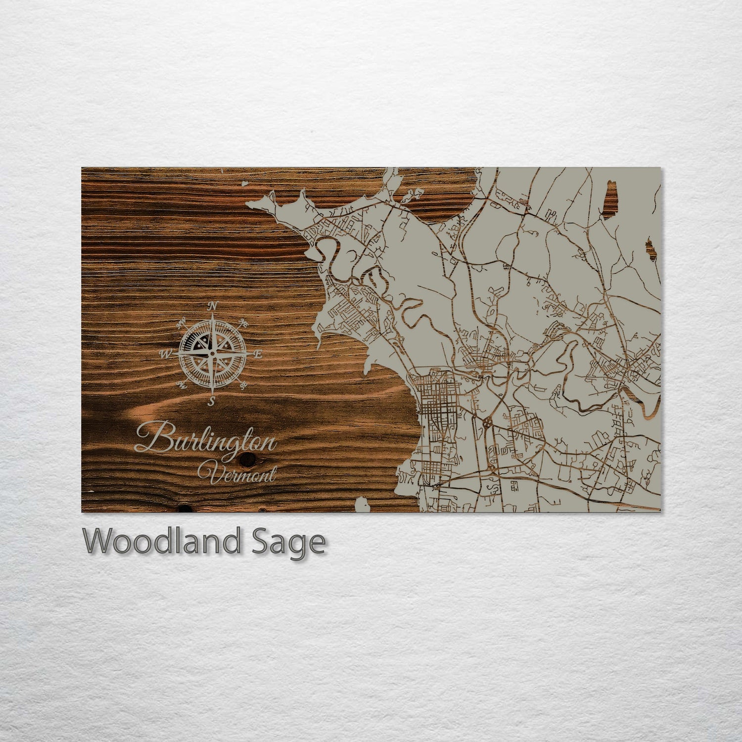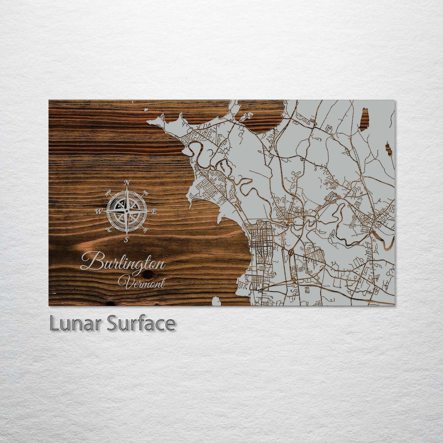 This Burlington, Vermont street map, beautifully engraved into premium pine wood, encapsulates the city's distinctive layout, offering a unique piece for those who appreciate Burlington's quaint charm and scenic beauty.