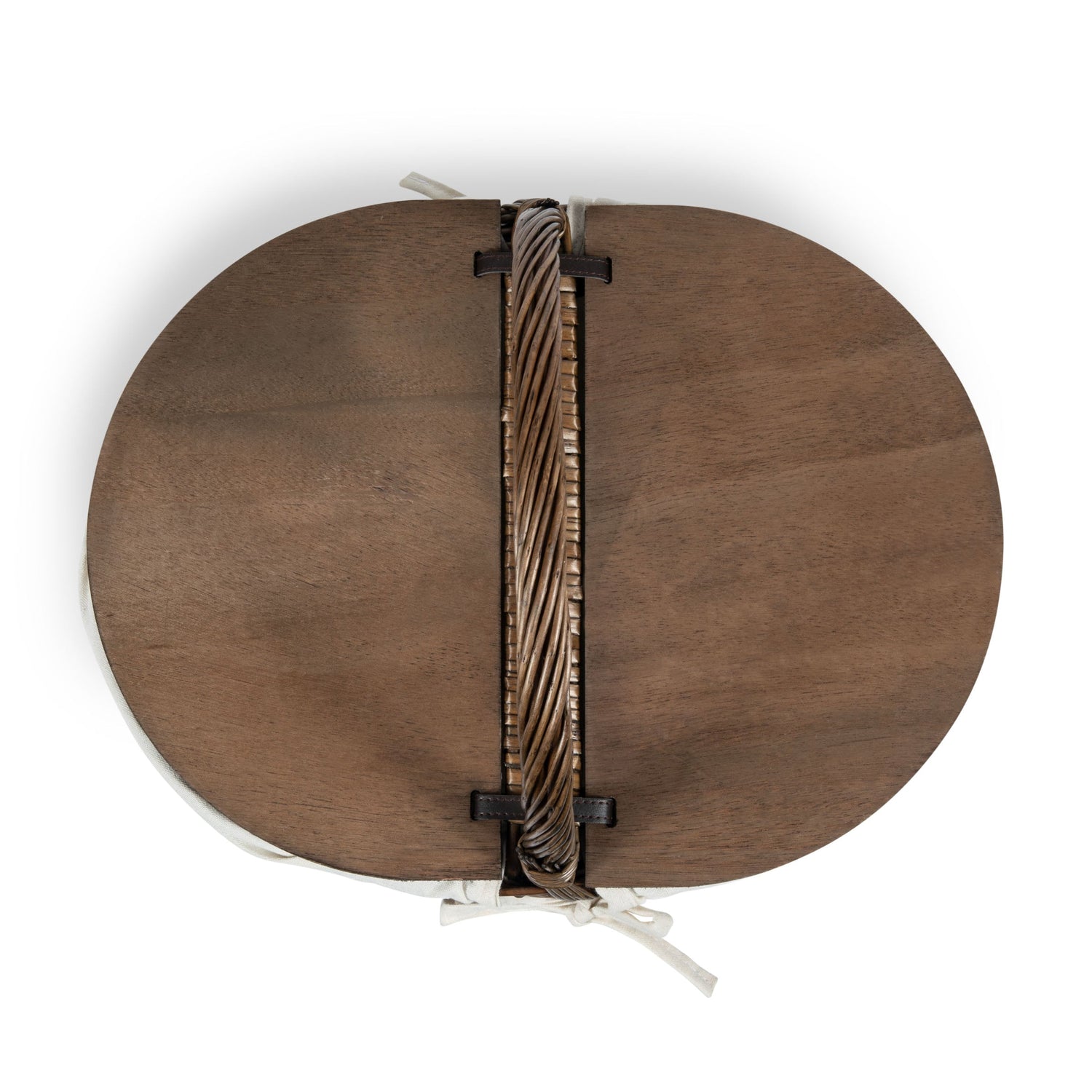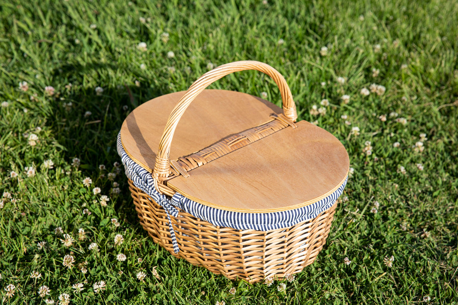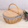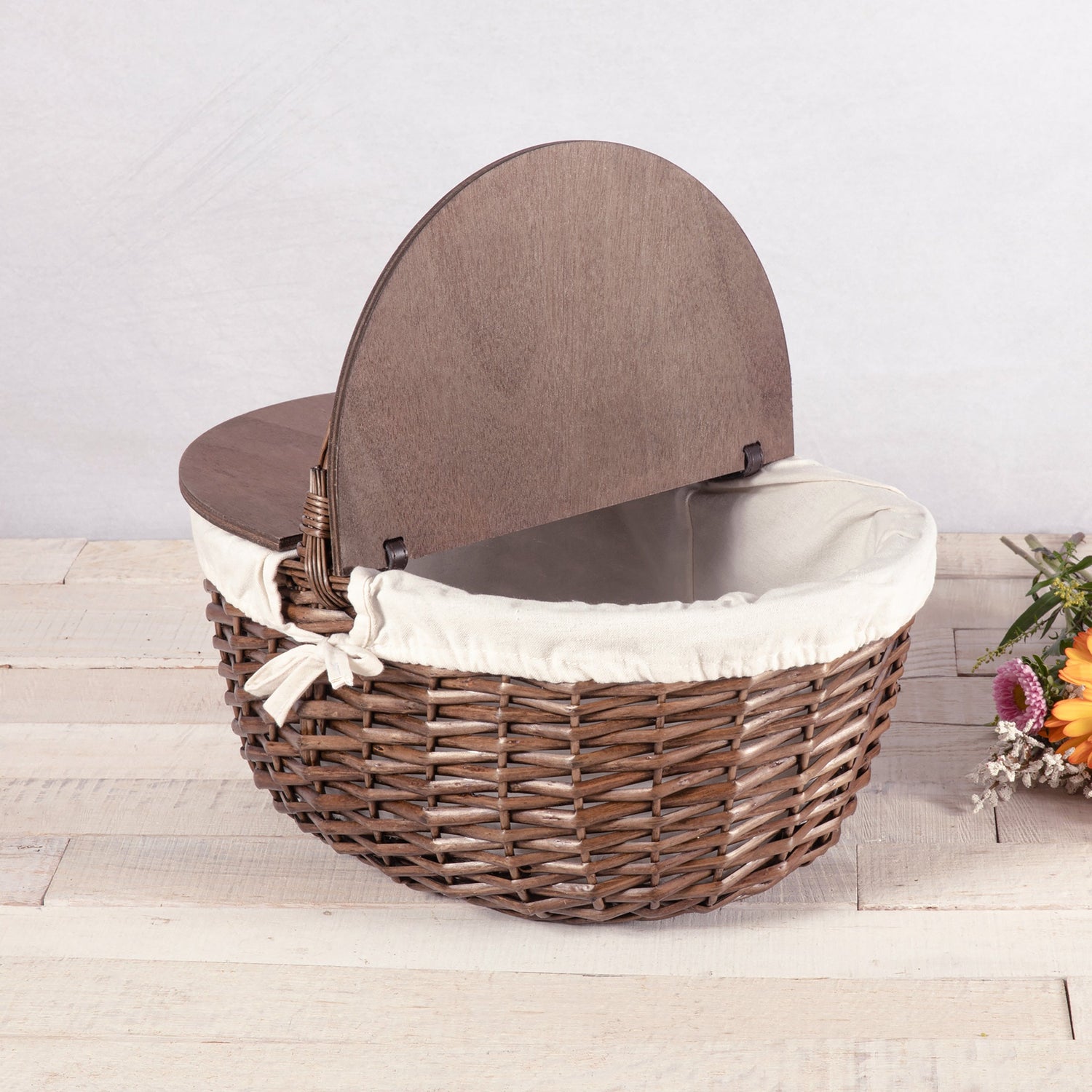Kick back with the simplicity of the Country Vintage Picnic Basket with Lid. This small wicker picnic basket for 2 is right at home in the park or a lazy day at the beach. Straight out of a storybook, this classic English-inspired large wicker picnic basket set is perfect for 2. With a lovely handwoven-willow body, a sturdy grab-and-go handle, a washable poly/cotton liner, and a wooden split-lid for dual entry that can also be used as a level surface for cups and plates, this picnic basket brings a stylish vintage sensibility. This basket even offers an opportunity for self-expression if you're crafty/DIY type - you can paint, chalk, or draw on the lid to customize your basket and make it 100% your own. Keep it classy and classic with this iconic split lid wicker basket.