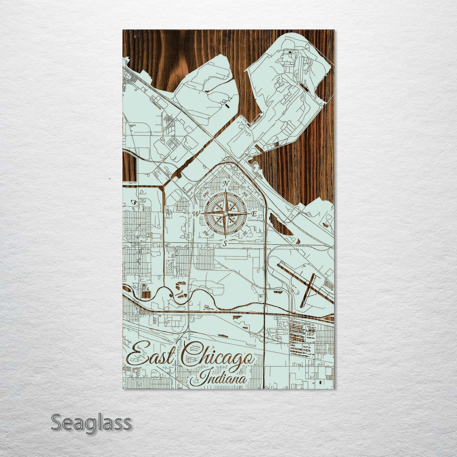 East Chicago, Indiana: A Timeless Cartographic Expression in Wood: This finely crafted wood-engraved street map of East Chicago, Indiana, emerges as a remarkable treasure in any collector's ensemble. Precision-engraved on premium pine wood, it eloquently captures the city's distinctive street layout, offering a unique, tactile exploration of East Chicago's geography. Perfect for enthusiasts of geographical aesthetics or those with a personal bond to East Chicago.