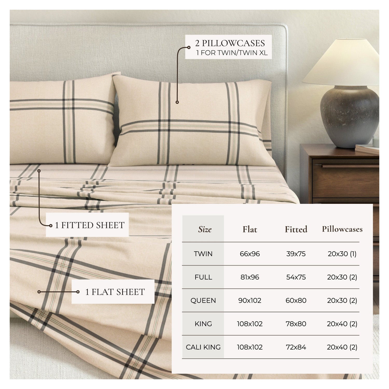 Fall to sleep in ultra-soft, breathable, and quality Turkish cotton flannel sheets. This collection features plaids and stripes that will add a subtle update to your bedroom for fall and winter. These 100% cotton sheets are double-brushed for softness and durability to ensure you have a set that offers comfort every night. Flannel sheets offer warmth for even the coldest of nights, so add these luxurious cotton flannel sheets to your bed and experience true comfort. Products that look good, feel good, and are made well, so you can trust you're getting high-quality products. These cotton flannel sheets are Standard 100 Certified by OEKO-TEX®.