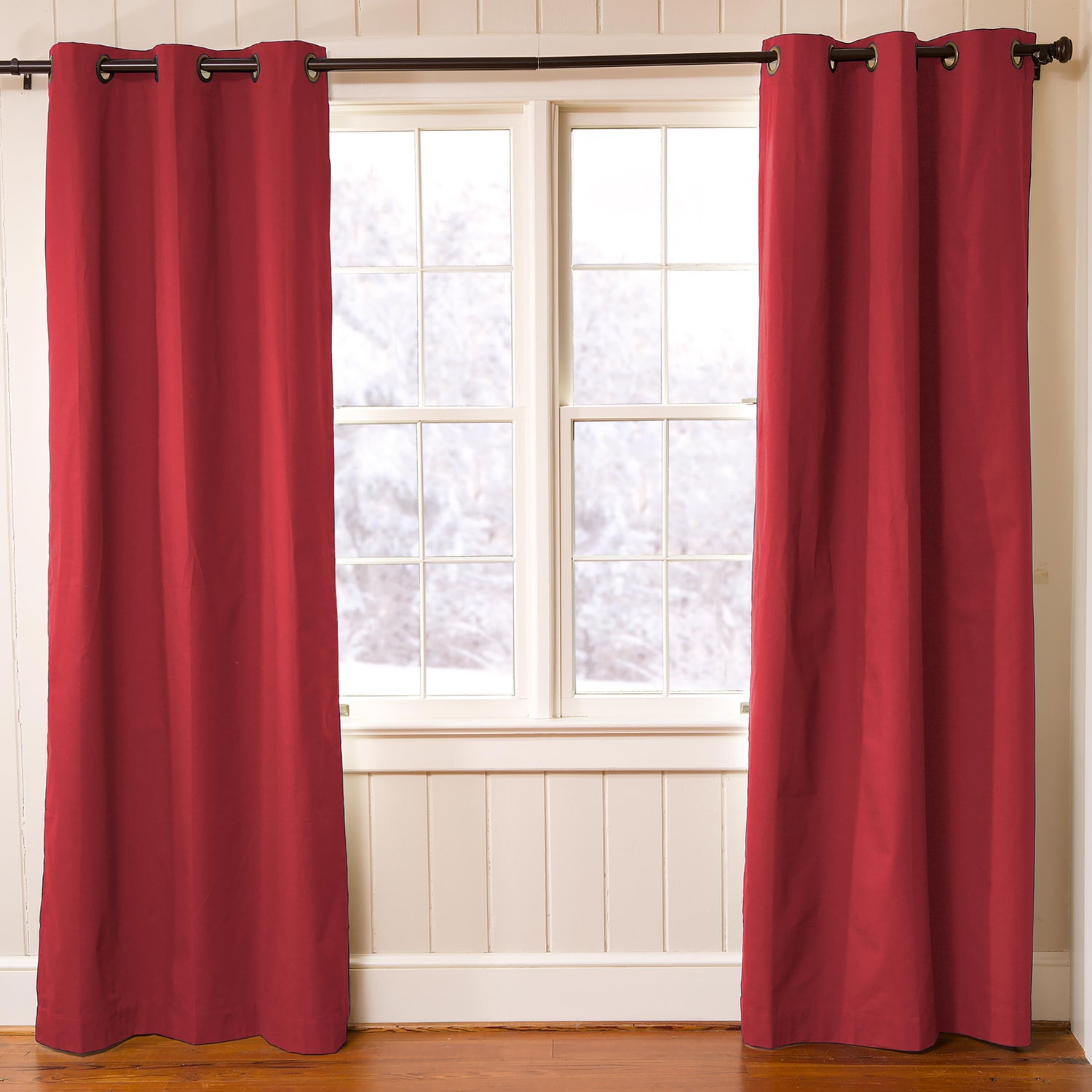 Our Thermalogic™ Energy Efficient Insulated Solid Grommet-Top Curtain Pairs have an attractive finish, substantial weight and a soft feel. They're made of cotton with a rich, woven texture similar to sailcloth and backed with an acrylic suede liner. Six antique-brass grommets per panel.