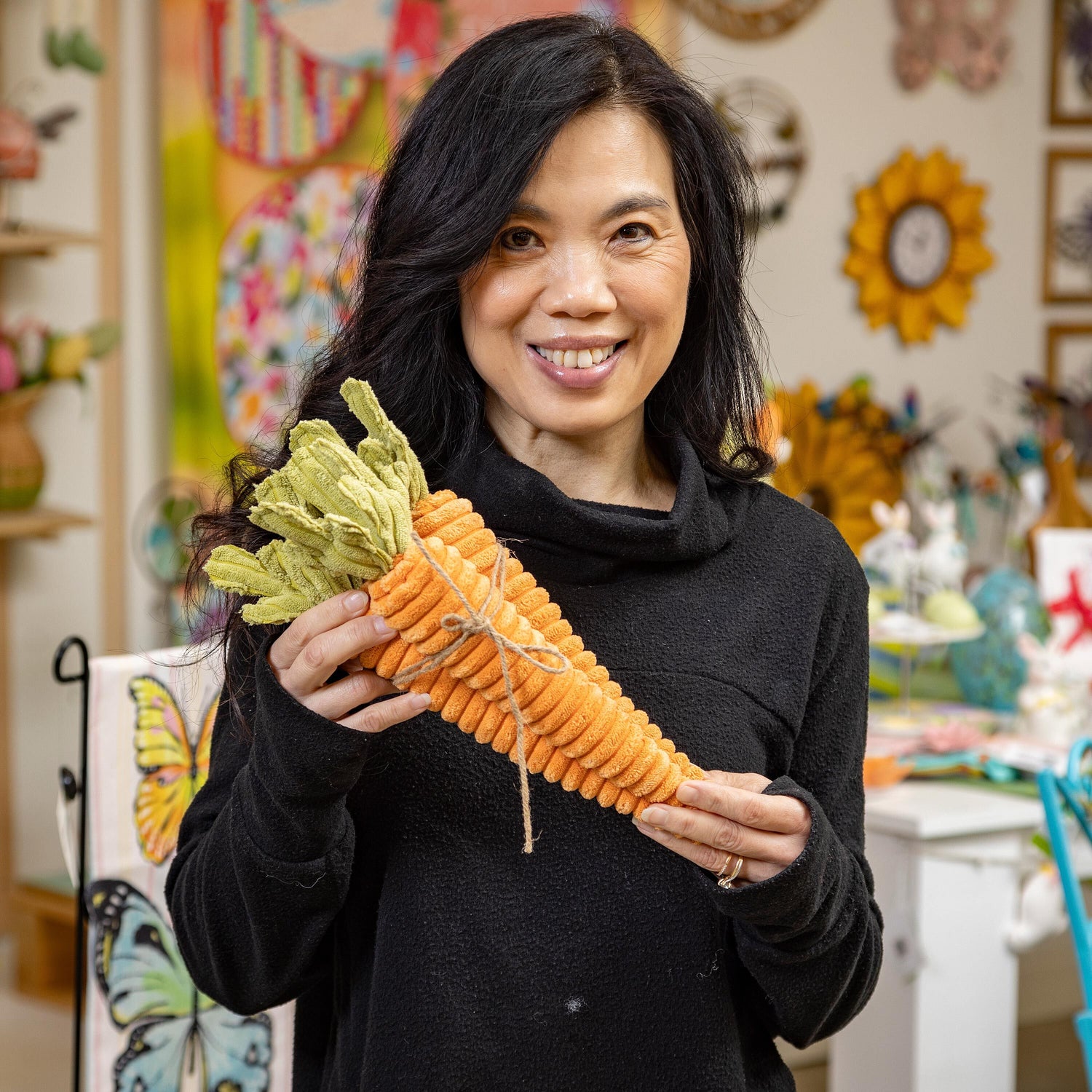 Celebrate the arrival of spring with this charming set of Carrot Bundle Fabric Table Décor. These carrots feature a fun, textured design and are tied together with twine for a finished look. Add them to a mantel, table, shelf and so much more to bring a spring or Easter look to any space. Set includes three carrots tied together.