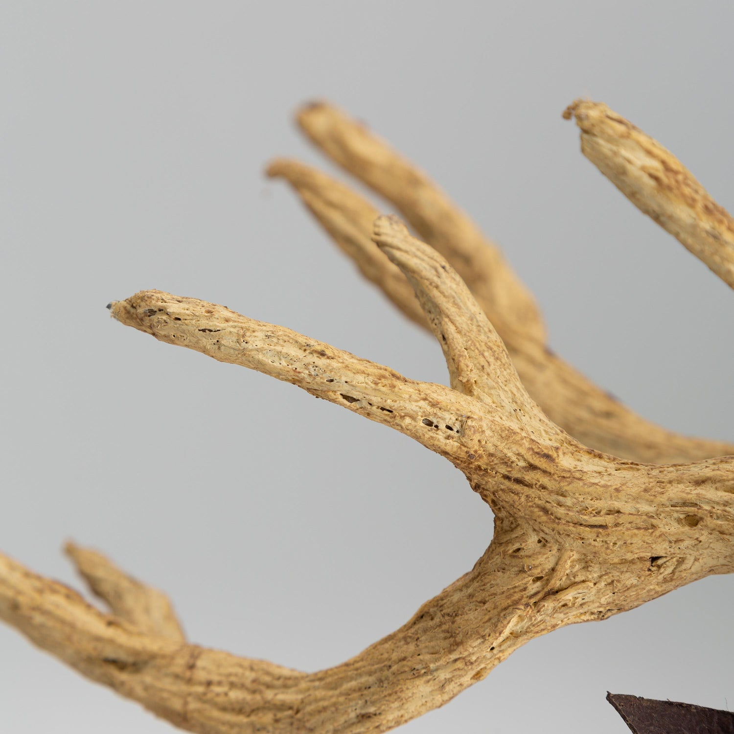 Artisans in India handcraft this distinctive standing stag from natural fiber forms wrapped in embroidered vintage sari fabric in colorful tones. Pair multiples together or place individually for an ethereal, woodsy vignette. Due to the handmade nature, sizes and fabric patterns will vary.
