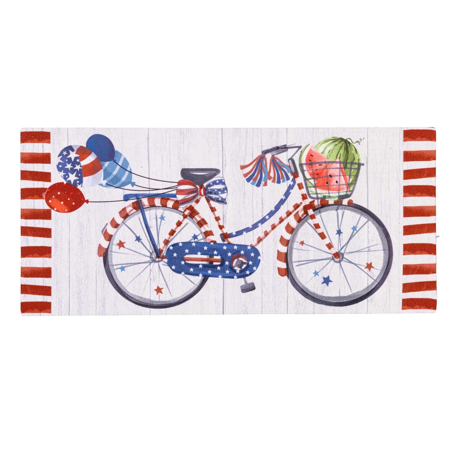 Sweep guests off their feet with our beautifully made Sassafras mats! Made with bright pops of color that are perfect for the season, this mat will put pep in anyone's step. Crafted from heat-sublimated polyester with a rubber backing, this versatile mat is designed to fit perfectly within Evergreen's switch doormat bases. The mildew resistant mat is ideal for indoor or outdoor use and features a skid-resistant backing to help keep it in place. This welcoming mat will freshen up your stoop season after season while ensuring your home stays debris-free. For stains, simply spot clean with soap and warm water.