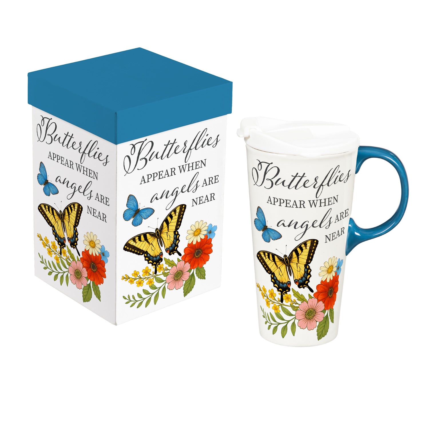 Memorial Travel Cup Ceramic Perfect Cup, Butterflies Appear, 17oz, Gift Box