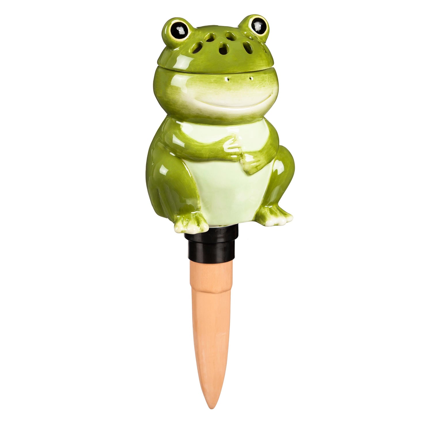 Crafted of ceramic with painted details, the decorative top can be filled with half a cup liquid bait (not included) to attract gnats and flies or filled with water when used as a watering globe. Simply swap out the metal stake with the terracotta spike.