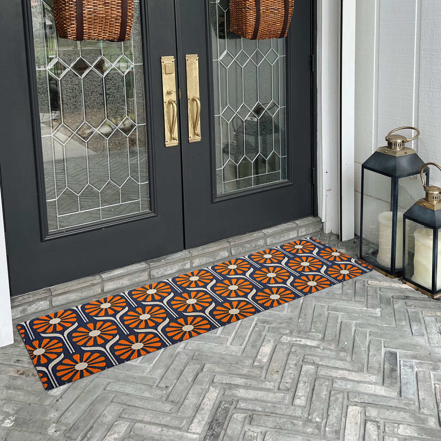 Neighburly Retro Daisies Doormat ,Orange/Blue Double Door
