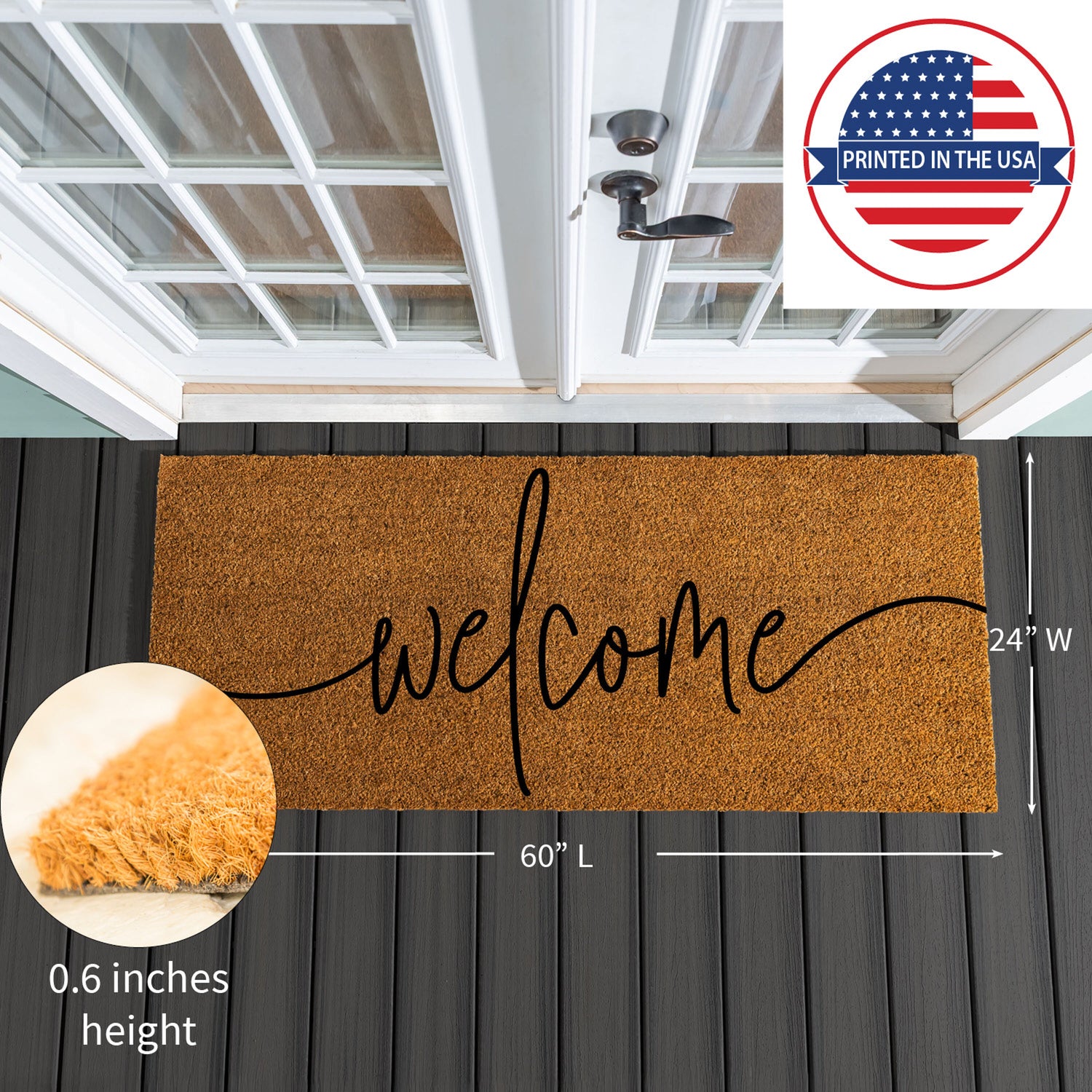 Oversized Welcome Coir Mat, 60"x24"