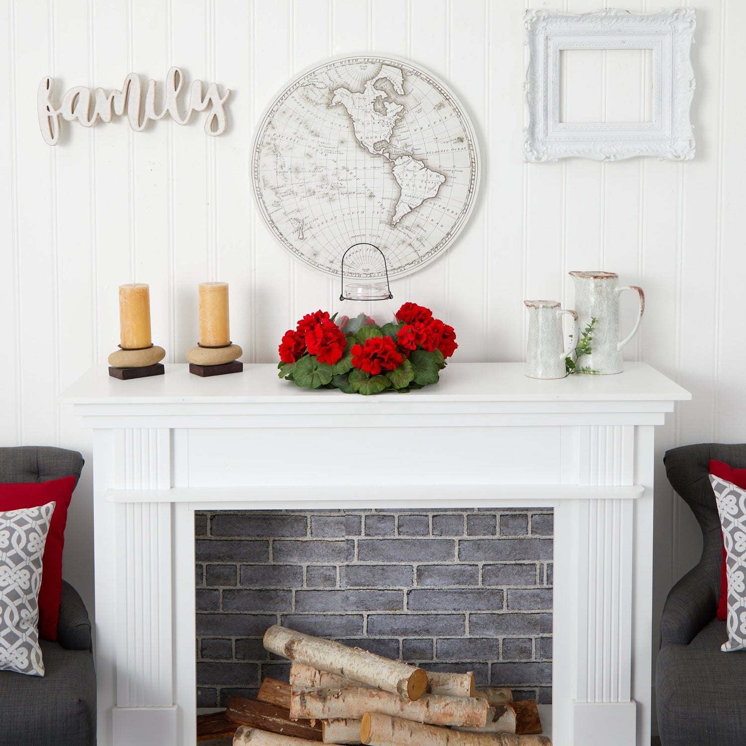 Enhance the beauty of your home with this Geranium Candle Holder. Red artificial flowers in bloom adorn a bed of green leaves, bringing depth and color to spaces that need a timeless yet contemporary look. This fake candle holder is crafted from high-quality materials and will last year after year. With a length of 16", curate in areas that need a focal point. Set the mood in a coffee table, dinning room or home office."