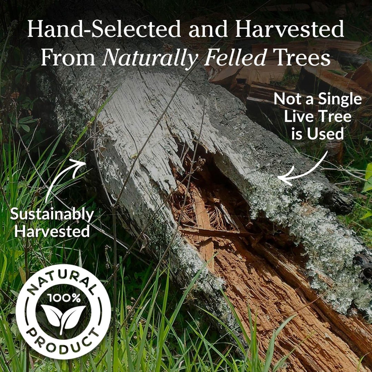 Every 8"L stick of our resin-rich Fatwood is hand-selected and harvested from naturally felled trees (storms, lightning, old age). Our Fatwood is not the by-product of commercial logging or clear-cutting. Not a single live tree is used. Plow & Hearth Fatwood is the all-natural, environmentally friendly fire starter.