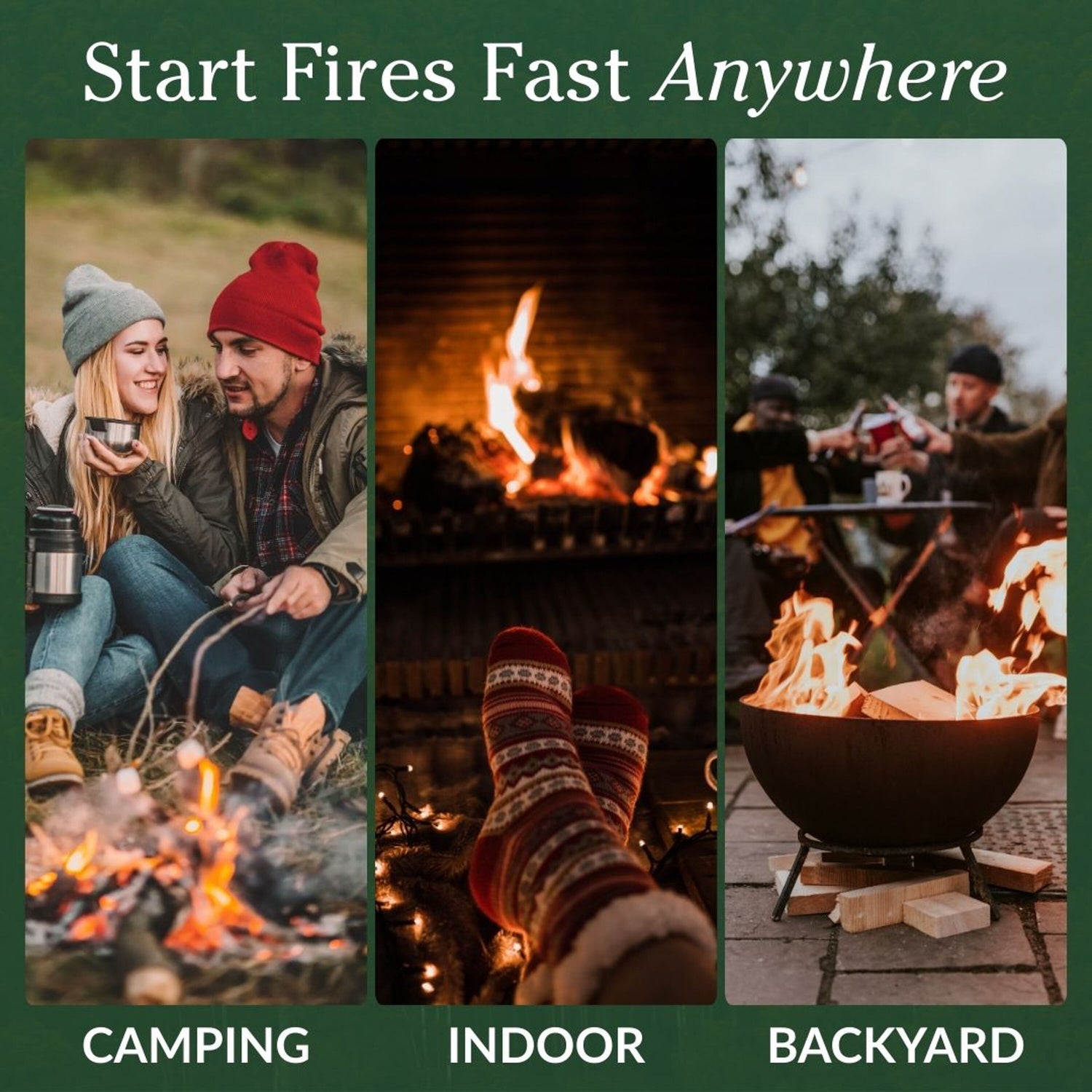 - Quick and easy: just two sticks start a roaring fire