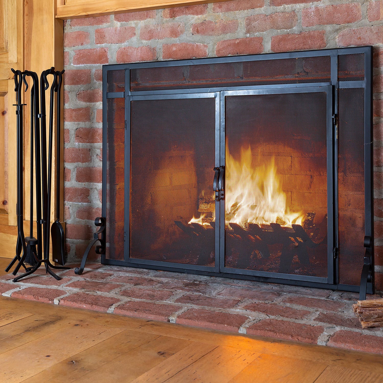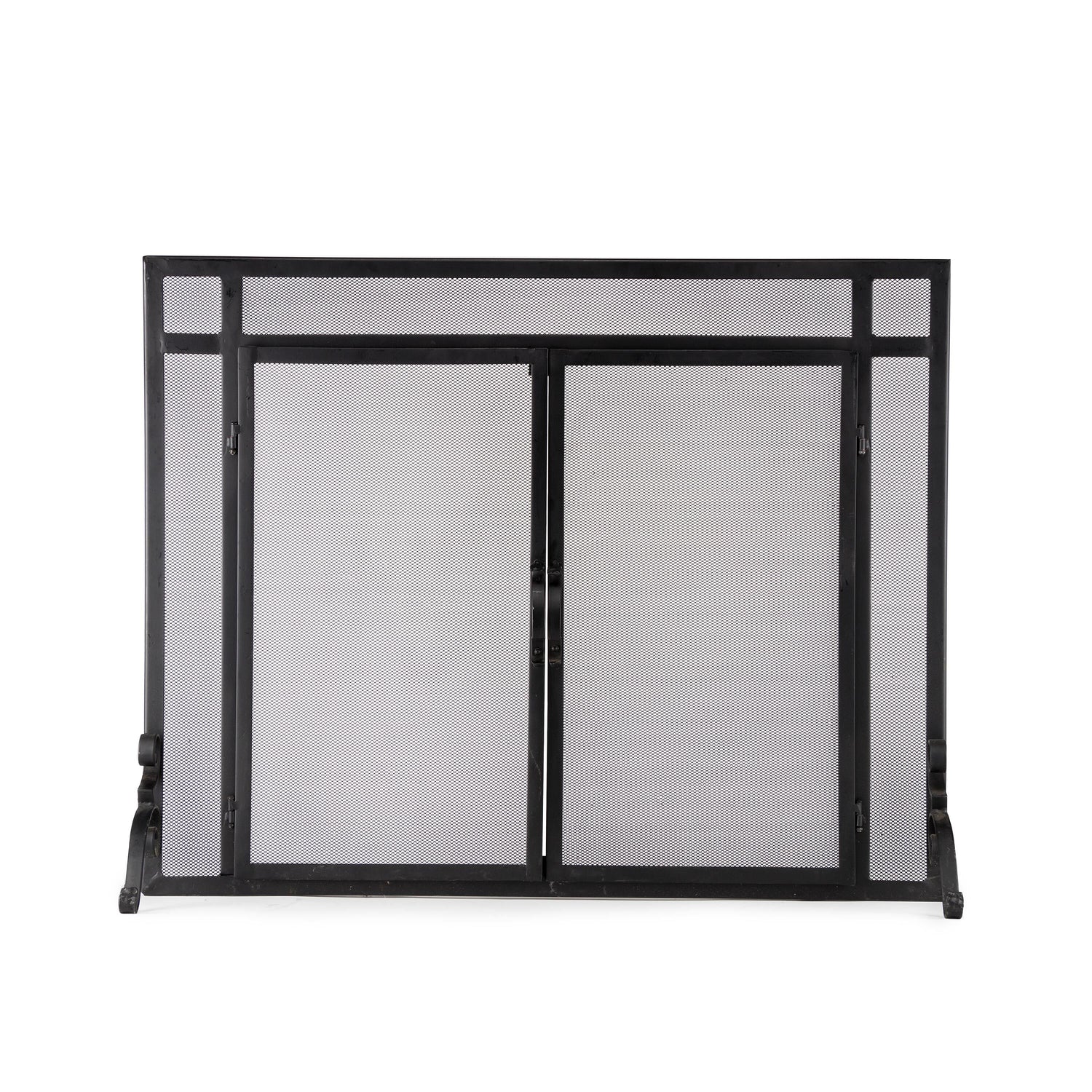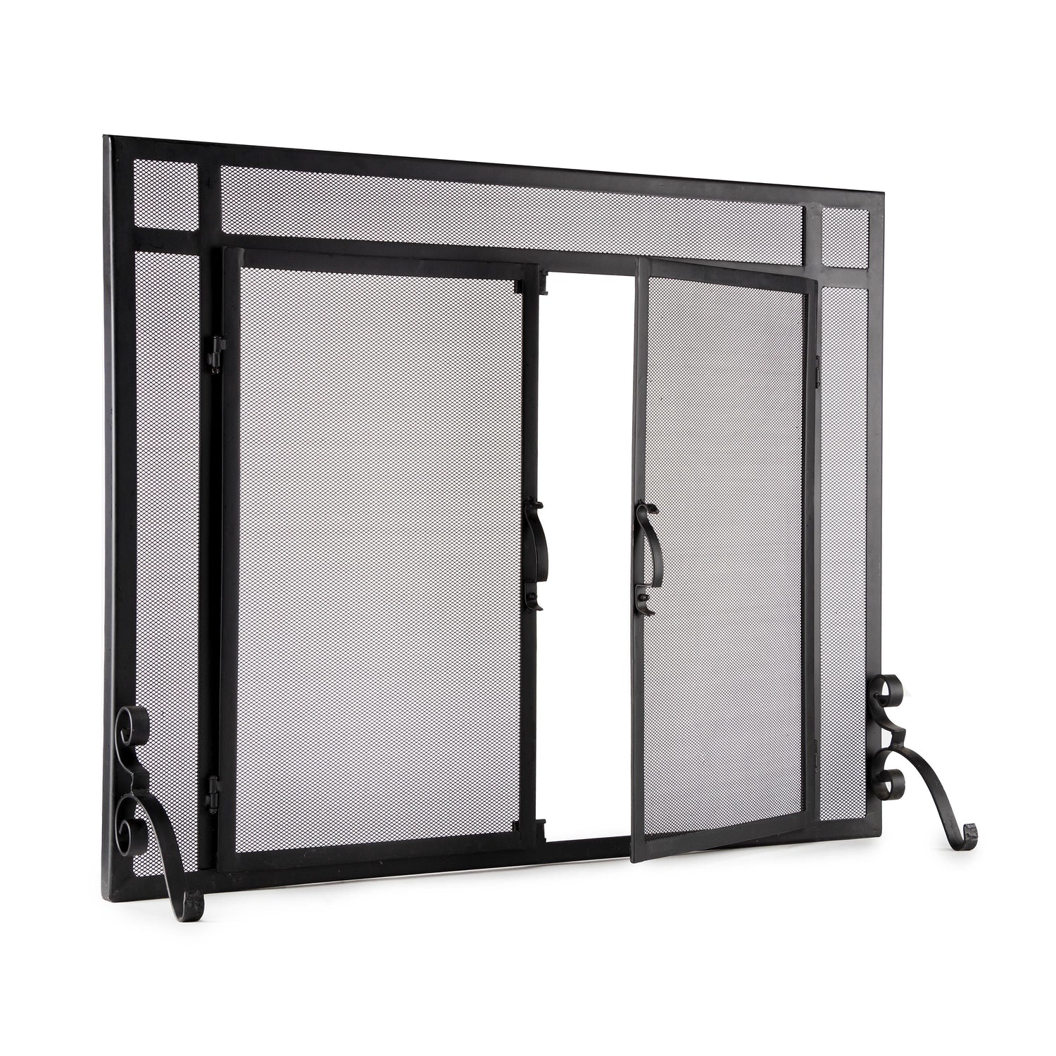 Flat Guard Fire Screens With Doors in Solid Steel, 39"W x 31"H