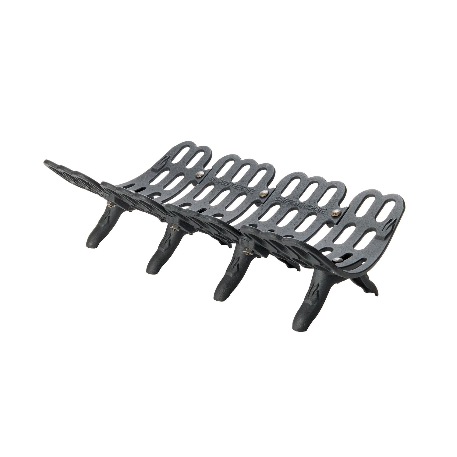 Heavy-duty cast iron Sampson Fireplace Grate is made for years of dependable use - it won't burn out or warp like other lesser quality versions. Durability and versatility forge its strength! Easy assembly.