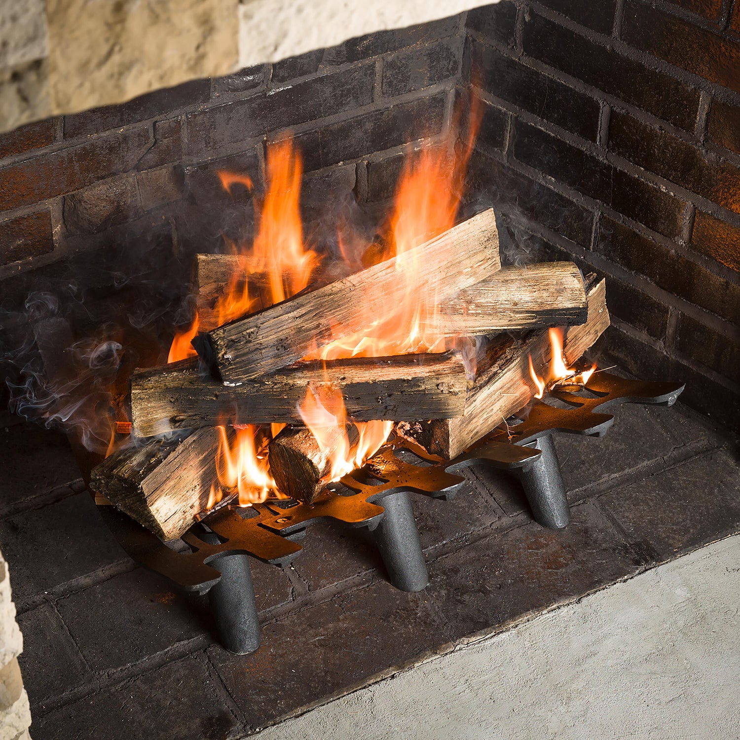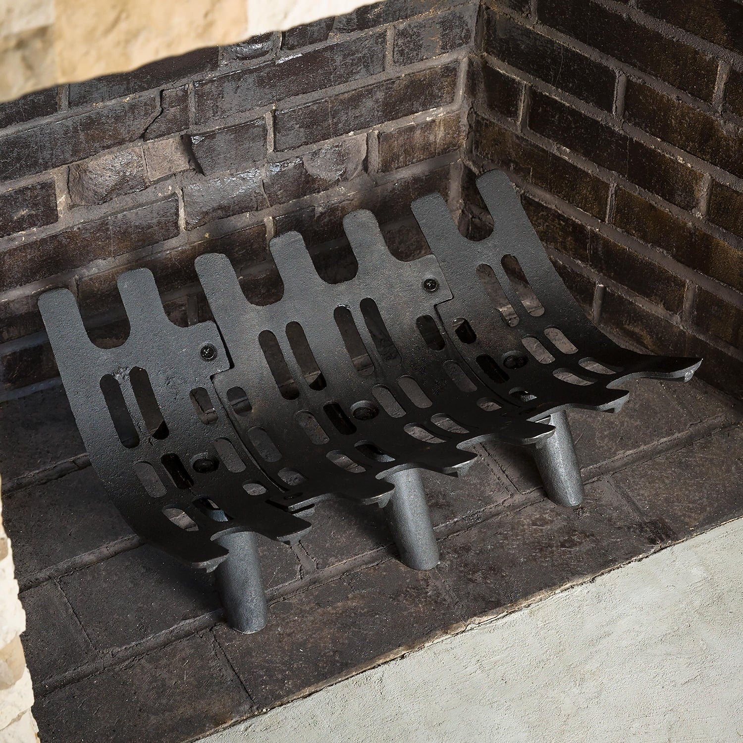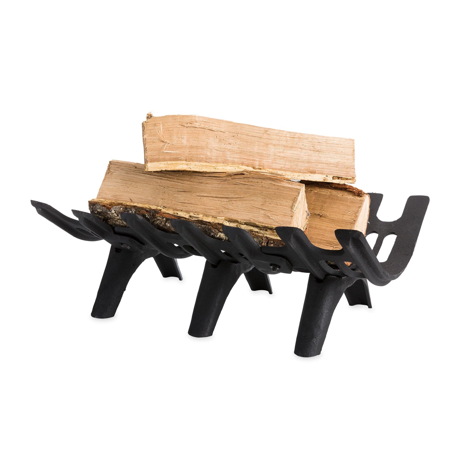 The deep-bed design of our Cast Iron Deep-Bed Fireplace Grate keeps the logs in where they belong, so they won't roll forward.