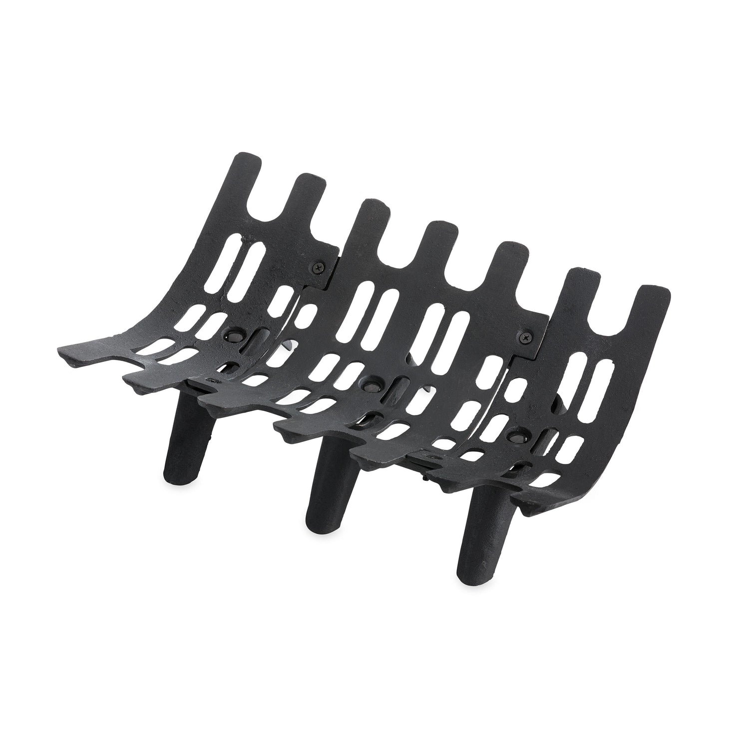 Heavy duty cast iron fireplace grate won't burn out or warp. Easy assembly.