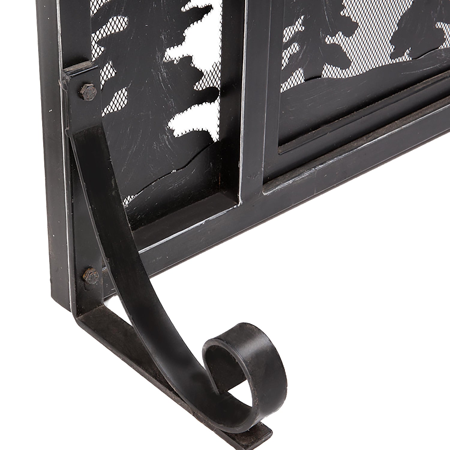 Multipane windows and an inviting front porch on the cabin make this fire screen extra welcoming; the multi-step, hand-applied finish gives it even more style. Best of all, a single, extra-wide door with handle and magnetic closure makes fire tending easy and safe. Laser cut and beveled design for 3D look. Screen includes two back legs that can change position along the bottom (simply slide and tighten).