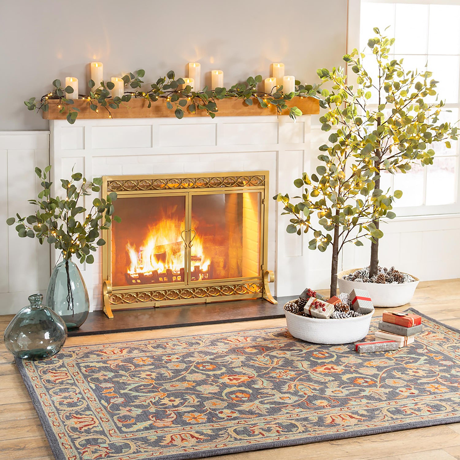 Cast iron scrollwork gives this screen presence. Enjoy the dancing flames of your hearth framed by our exclusive fire screen with cast iron scroll border.