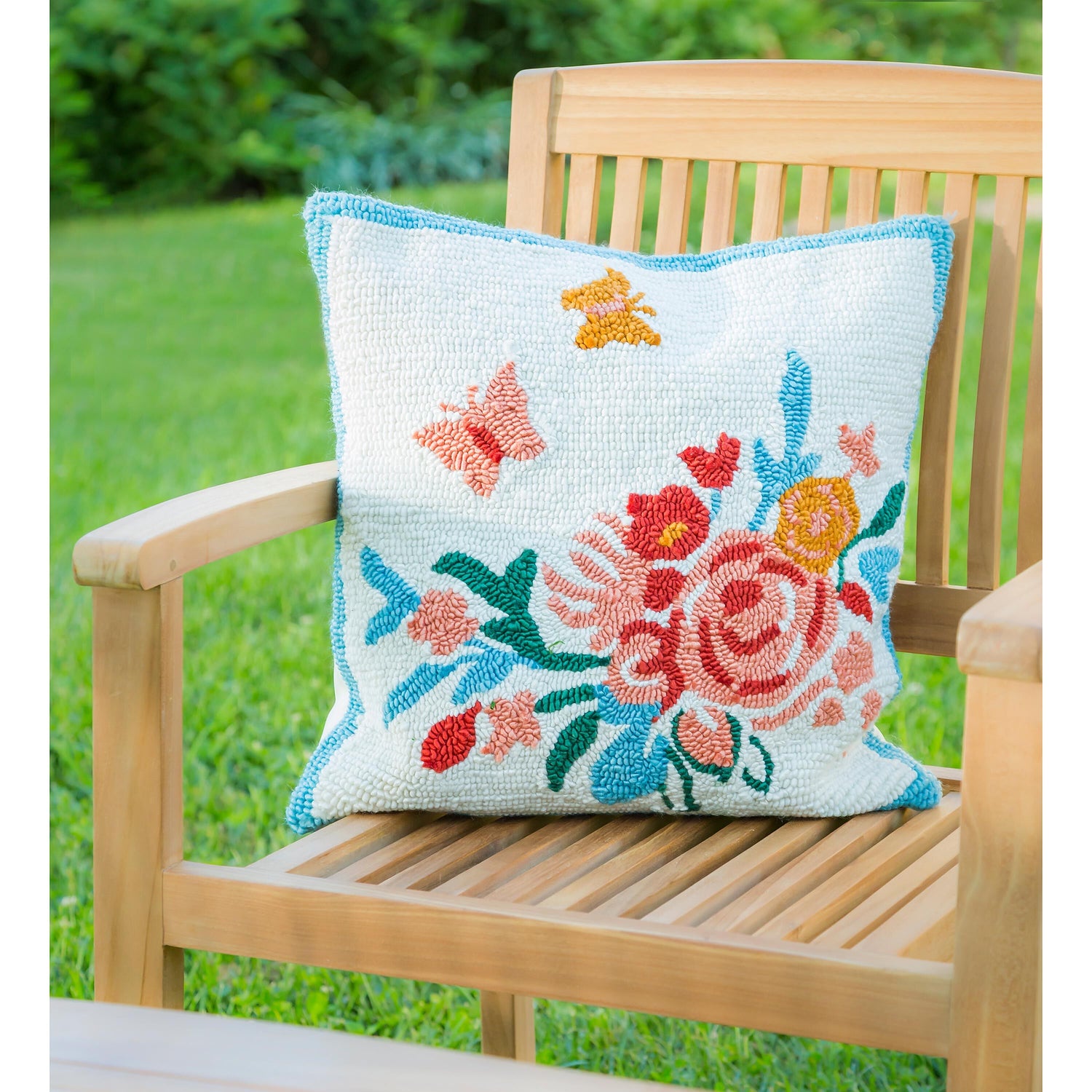 Indoor/Outdoor Hooked Pillow 18"x18" Butterfly Meadow