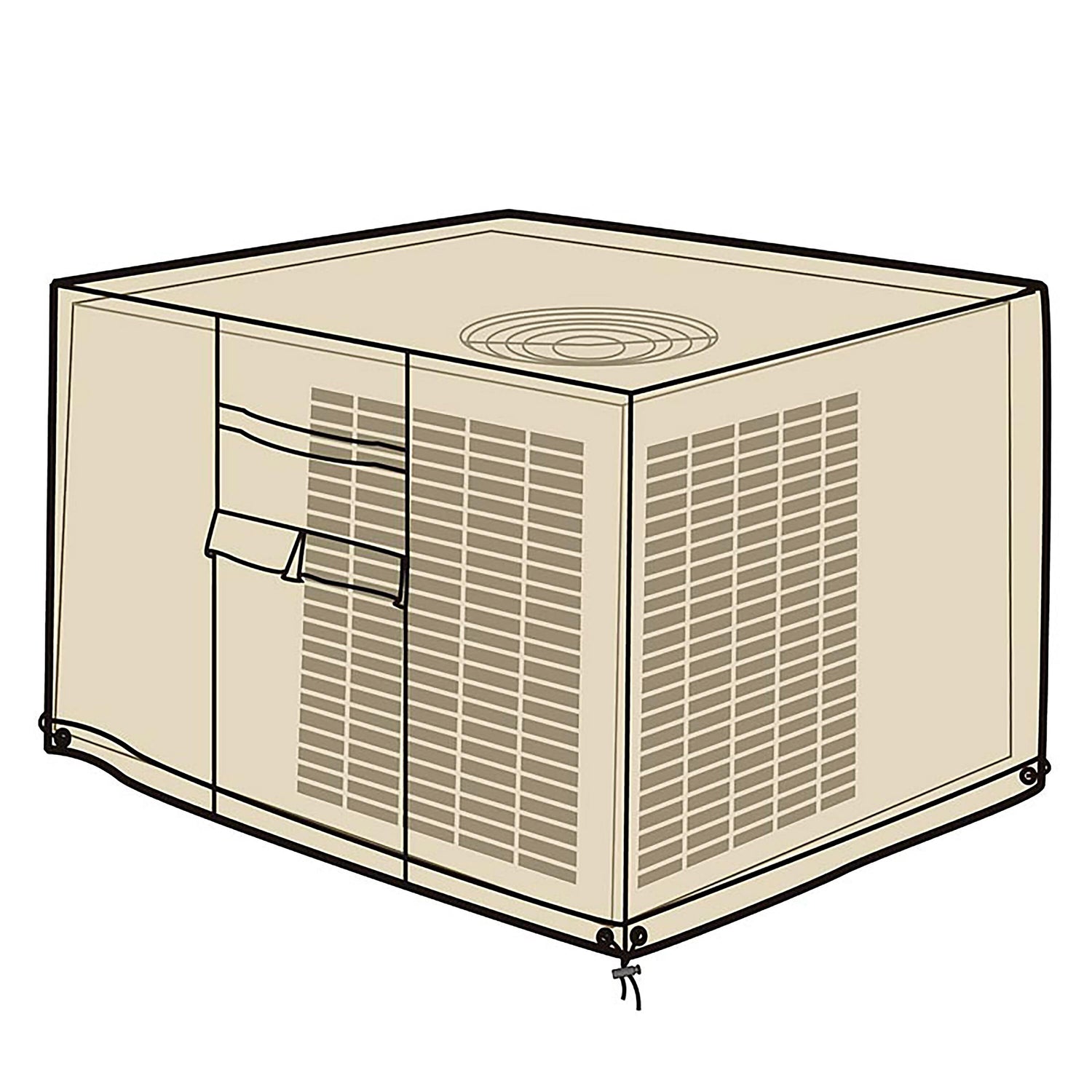 Covered vents allow for air flow, helping to prevent mildew during storage. Sturdy handles make this AC cover easy to use, while elastic toggle ties keep it secure. The attractive sand color makes this outdoor furniture cover look great and resists fading.