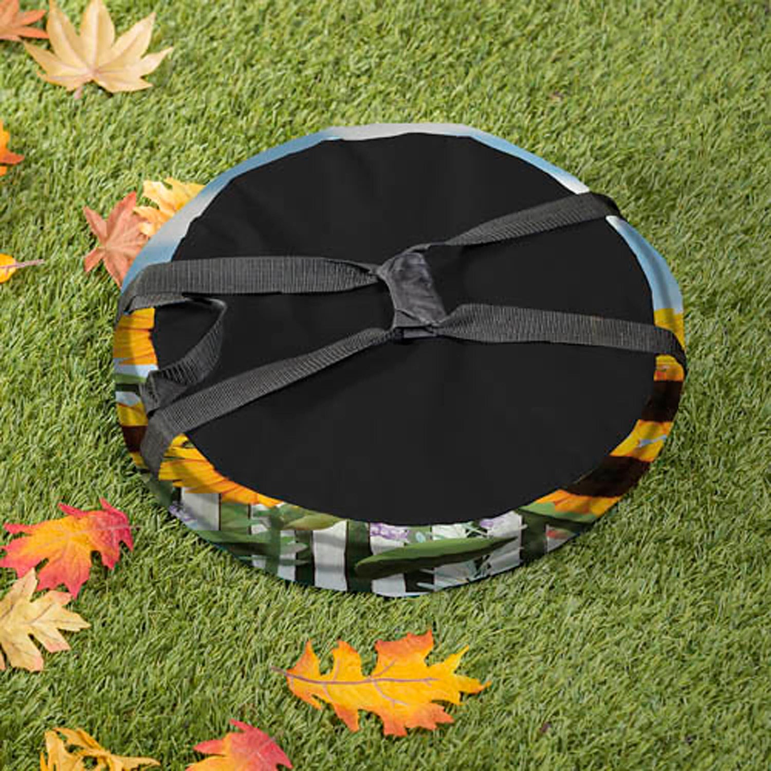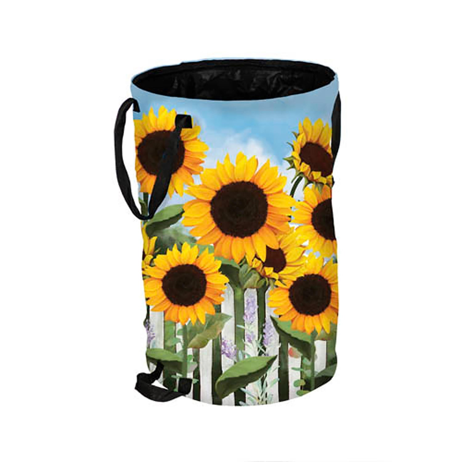 With its stunning sunflower design, this collapsible everything bag is the perfect item to store leaves and more. Anytime you're doing yard work this beautiful yard bag will come in handy. Can also be used to store pool toys, bags of potting soil, and other outdoor utensils. Made of weather-resistant textiles and metal, everything bags are durable and long-lasting. While not in use, they easily collapse for easy storage.