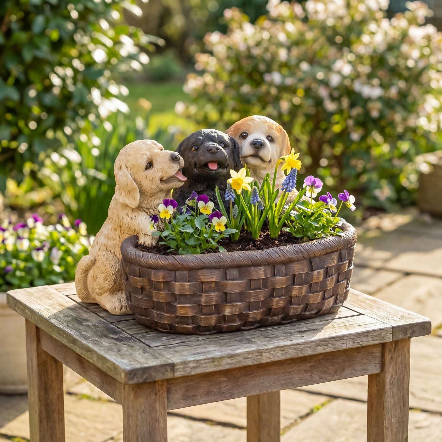 Puppies and Basket Resin Planter