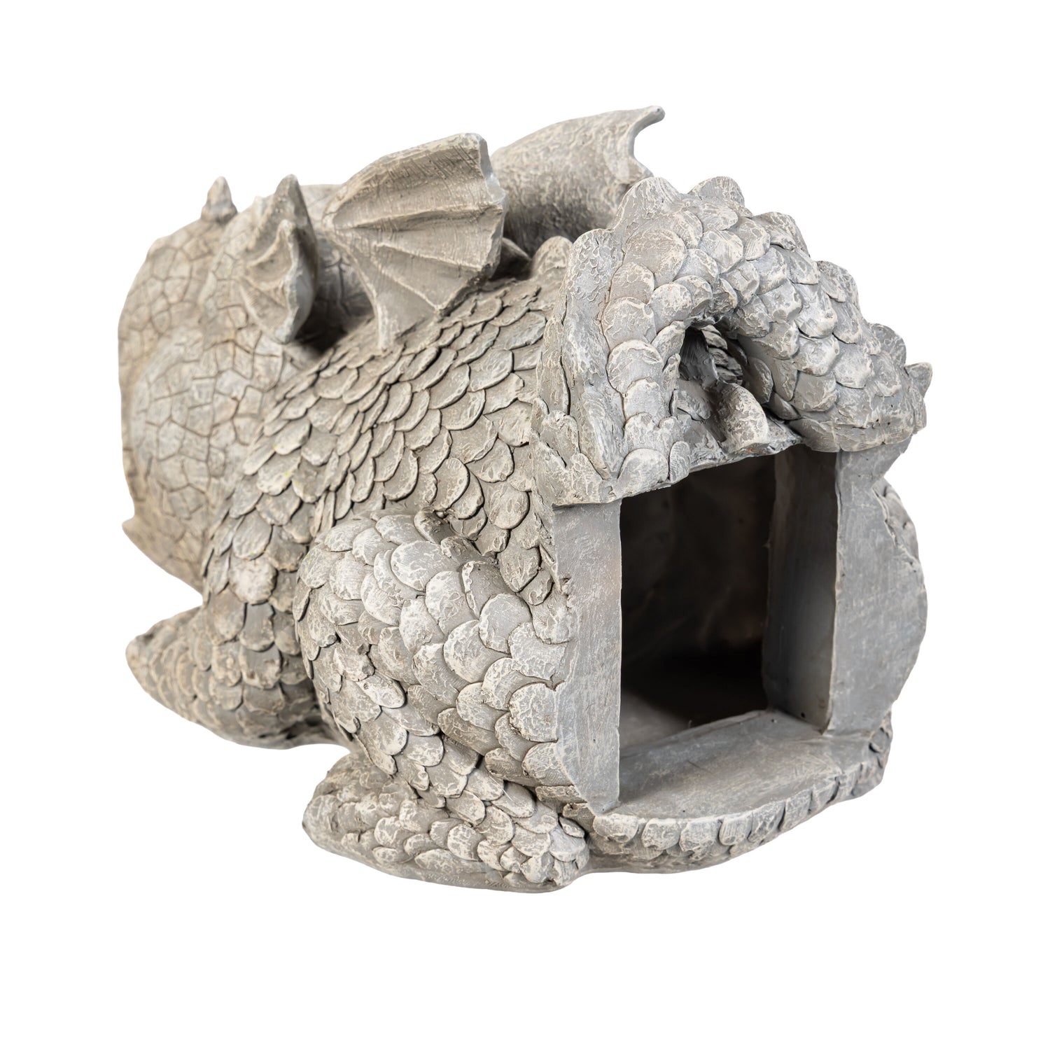 Turn rainfall into a dramatic display with the Dragon Resin Downspout. Designed to connect at the base of a downspout, this bold dragon channels rainwater away from the home while adding a striking decorative element to outdoor spaces. Made from durable resin, this piece is built for outdoor use and detailed to maintain its fierce look through changing seasons. It creates an eye-catching effect that transforms ordinary rainfall into something memorable. Ideal for fantasy lovers or anyone looking to make a statement in their yard, the Dragon Resin Downspout combines practical water control with imaginative design, proving that even rainy days can have a little fire.