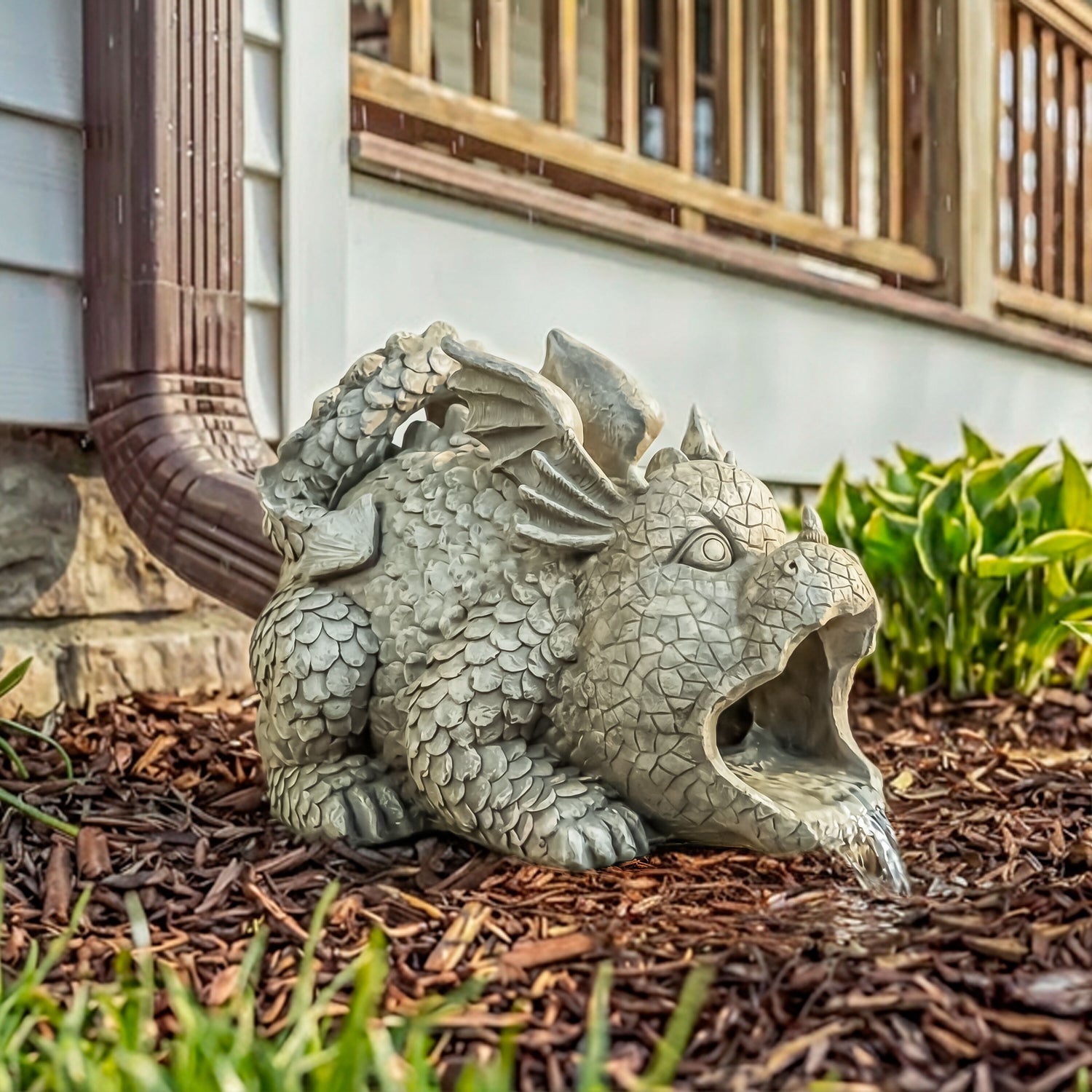 - Turn rainfall into a dramatic display with the Dragon Resin Downspout.