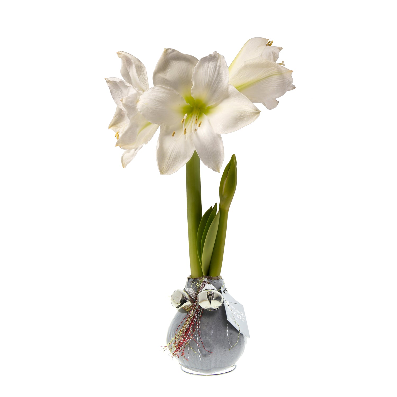 Bulbs are shipped in a dormant stage. Just place on an indoor surface and they'll bloom in a few weeks. Green bulb has a white flower; White and Red bulbs have red flowers. Imported from the Netherlands.