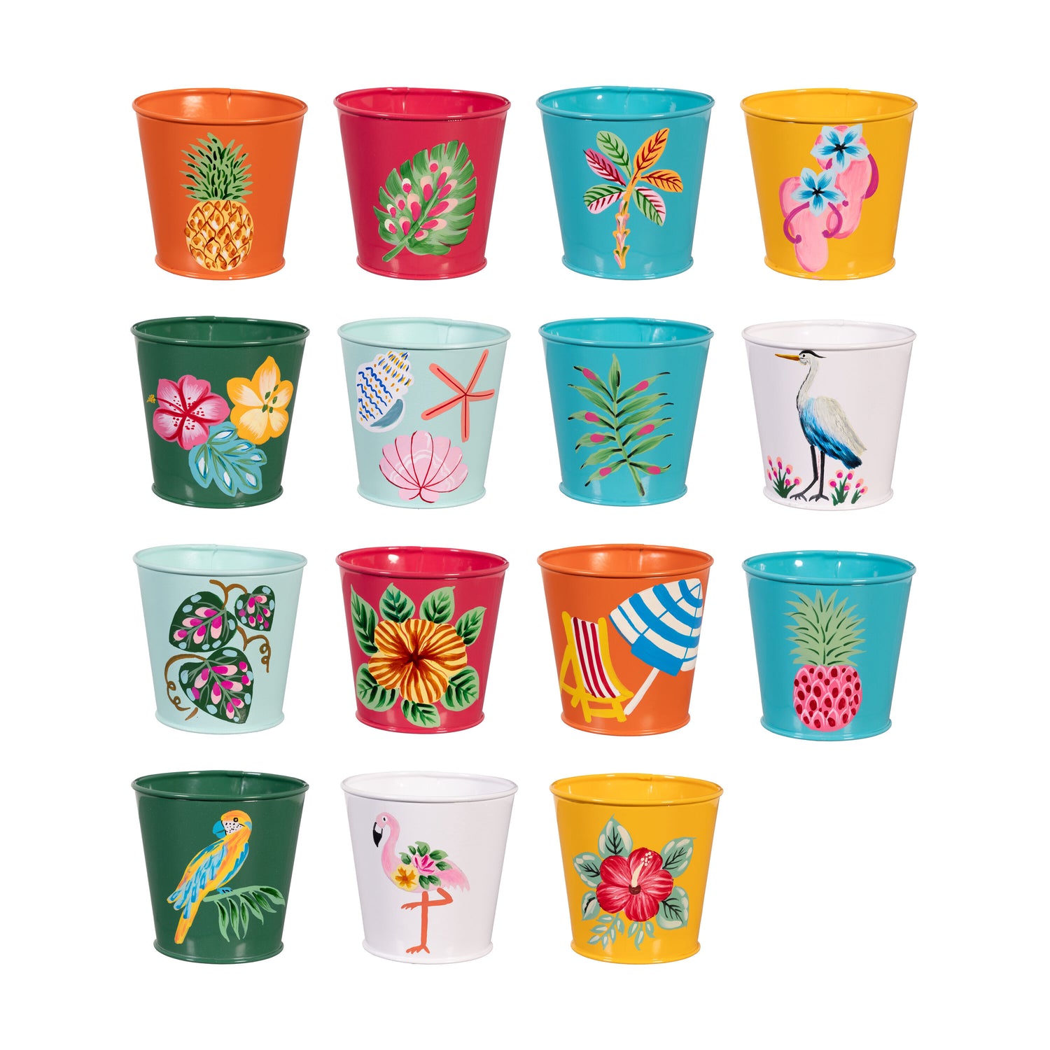 Palm Beach Planter, Metal Handpainted with Stand, Set of 60
