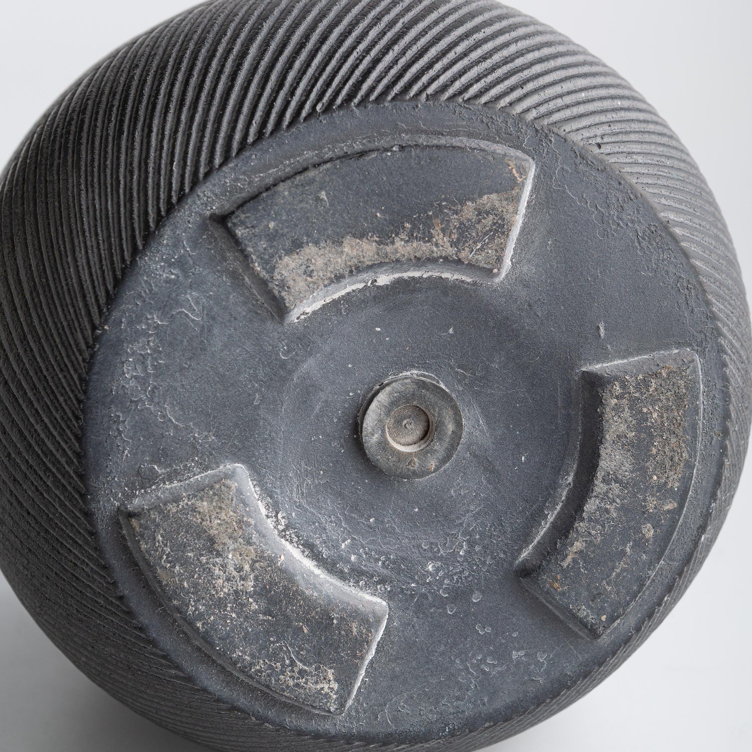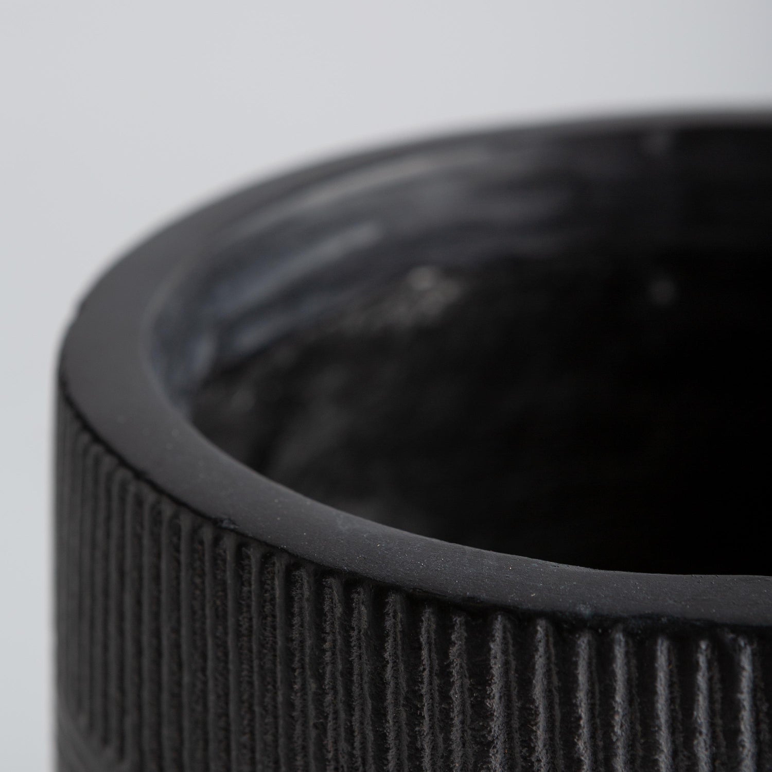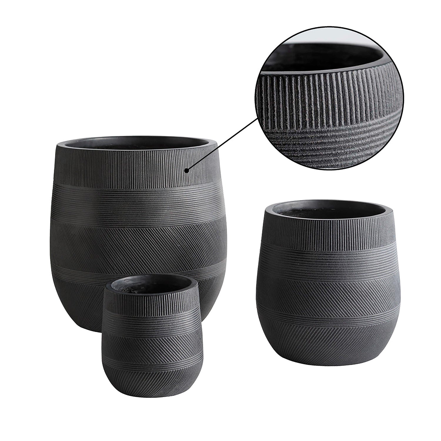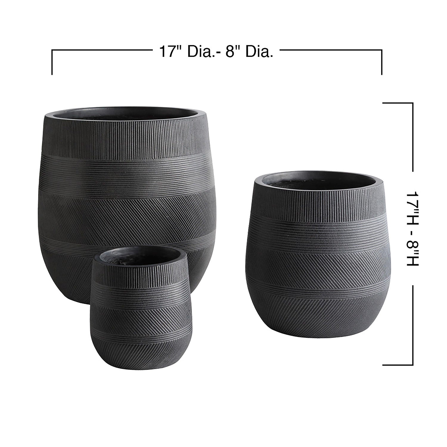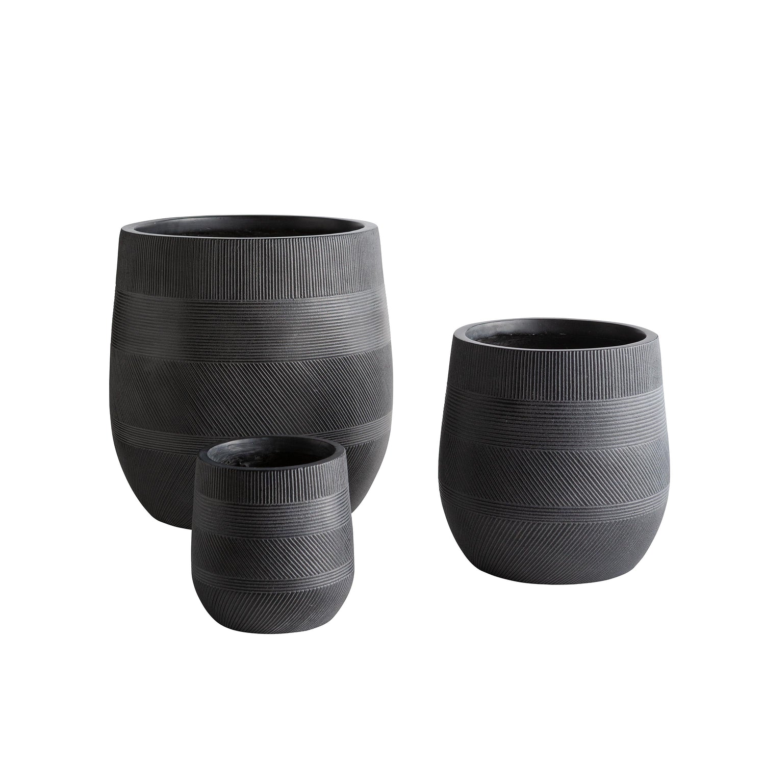 Round Stripe Fiber Clay Planters, Set of 3, Anthracite Black