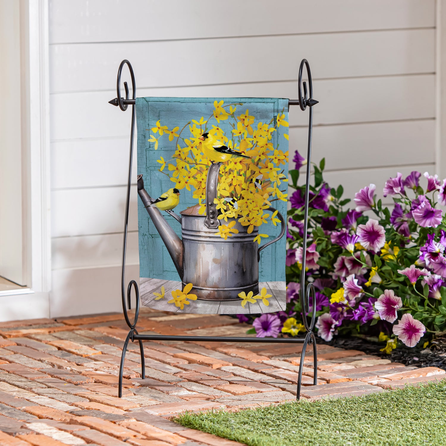 Bursting with bright colors and a detailed, lively design that adds beauty to any space, this flag is perfect for spring and beyond. Hang it in the garden to greet guests, neighbors, and friends. Flag is crafted of medium-weight suede fabric made from recycled plastic that provides a soft and durable texture. Artwork is heat transferred onto the sun-blocking material so that it is easily viewed from both sides. The weatherproof flag will not fray or fade with continued outdoor use. This flag features a sleeve for use with any standard flagpole or stand, sold separately.