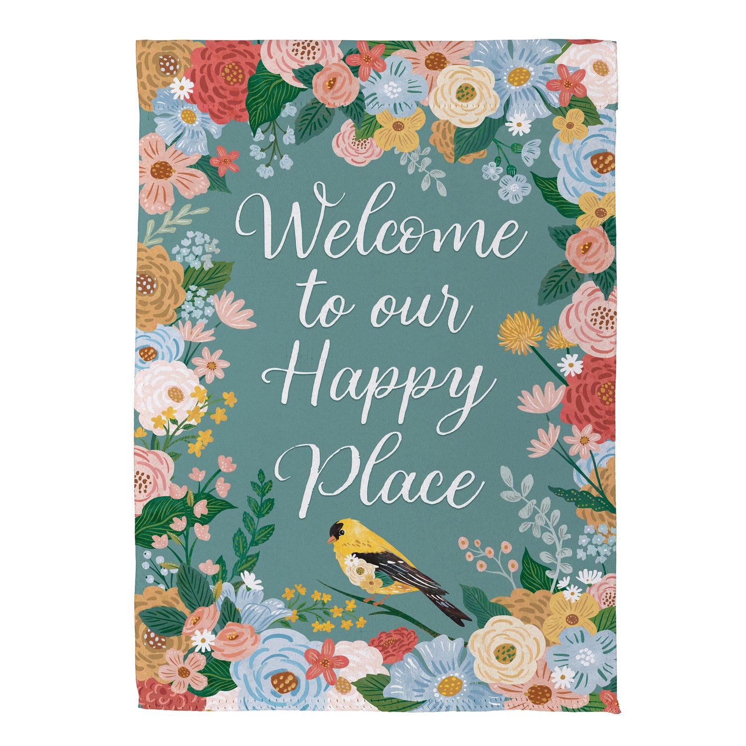 Bursting with bright colors and a detailed, lively design that adds beauty to any space, this flag is perfect for spring and beyond. Hang it in the garden to greet guests, neighbors, and friends. Flag is crafted of medium-weight suede fabric made from recycled plastic that provides a soft and durable texture. Artwork is heat transferred onto the sun-blocking material so that it is easily viewed from both sides. The weatherproof flag will not fray or fade with continued outdoor use. This flag features a sleeve for use with any standard flagpole or stand, sold separately.