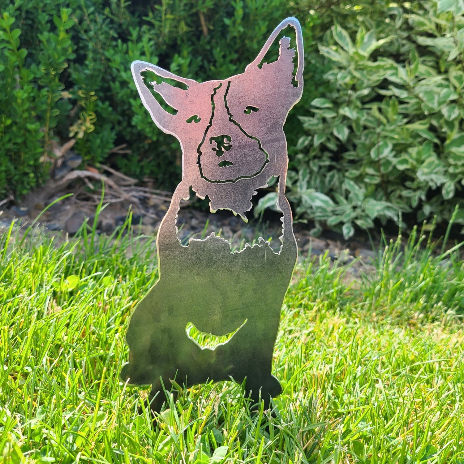 The Corten steel finish is designed to develop a beautiful patina rust coating that will change over time, protecting the steel underneath. These silhouettes ship out as raw steel and will develop a patina if left in the weather or frequently exposed to wet conditions. The color of the patina should change over time, starting as brighter orange tones and changing to darker brown tones.