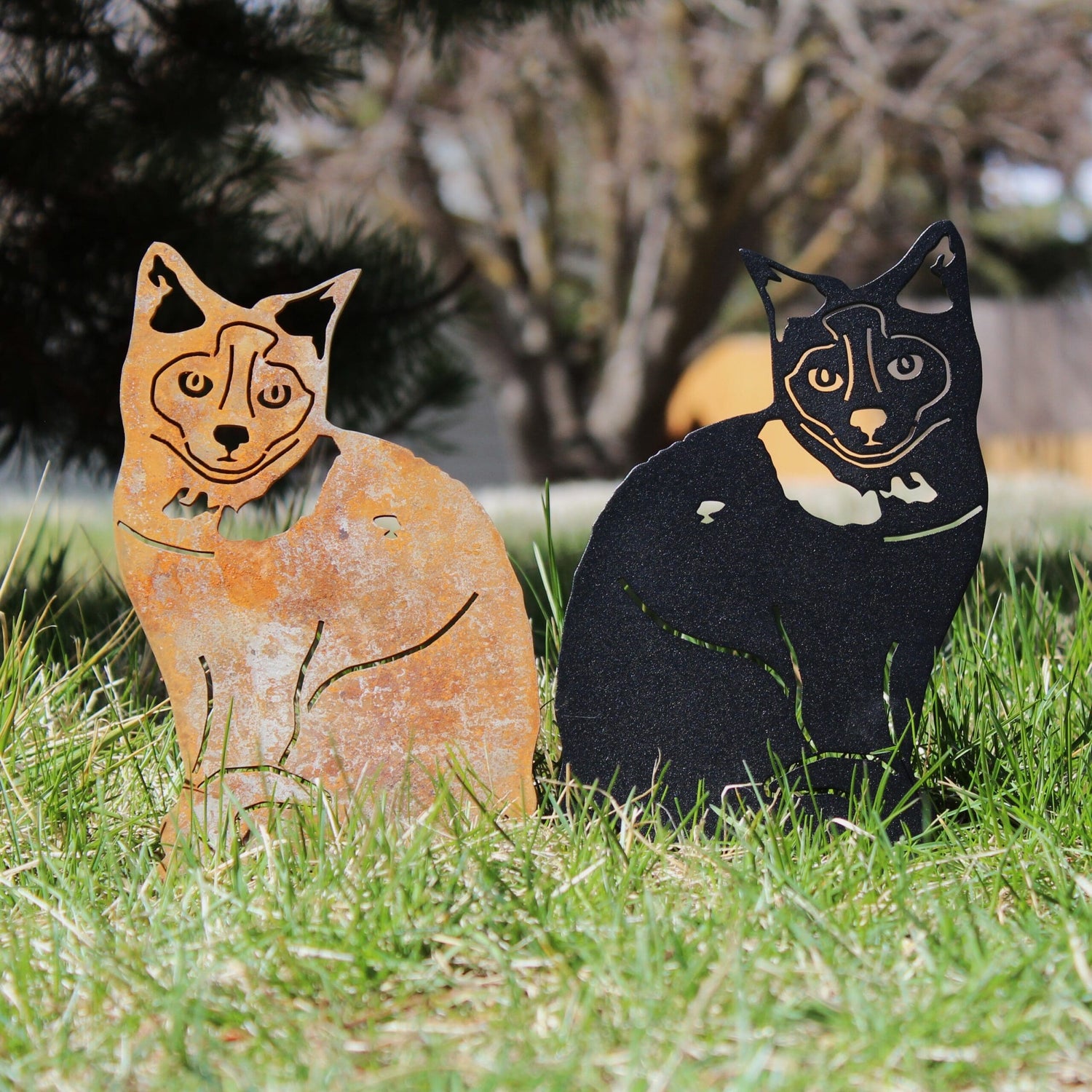 Metal Rescue silhouettes are handmade in the United States from sturdy 11 gauge premium weathering steel, also known as Corten steel. Each design is available in two different finishes- Corten steel and Black.