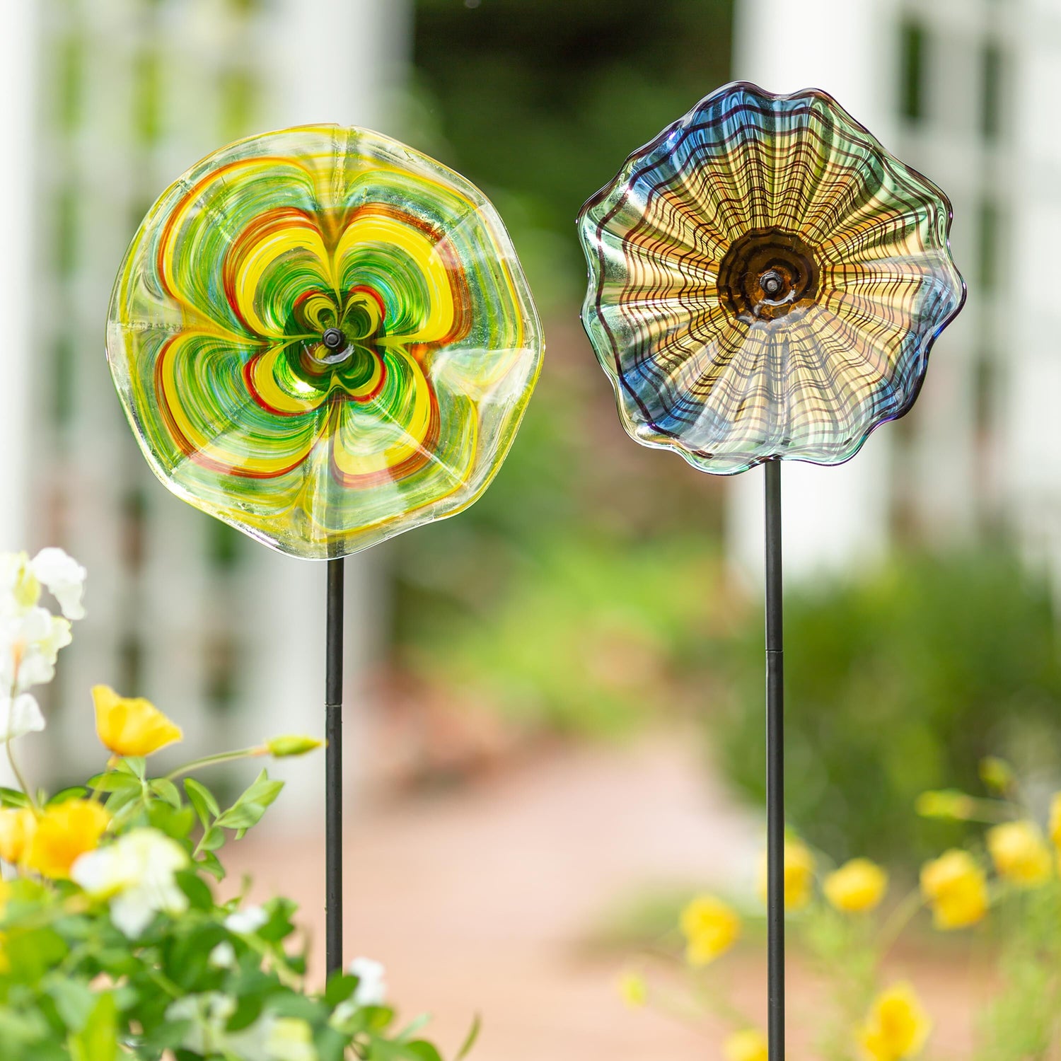 Each flower comes with a sturdy metal stake to ensure secure installation in your garden. Due to the handcrafted nature of these beautiful glass flowers, size and color will vary. We recommend bringing your flower stakes in during severe weather or extreme cold temperatures. Some assembly required.