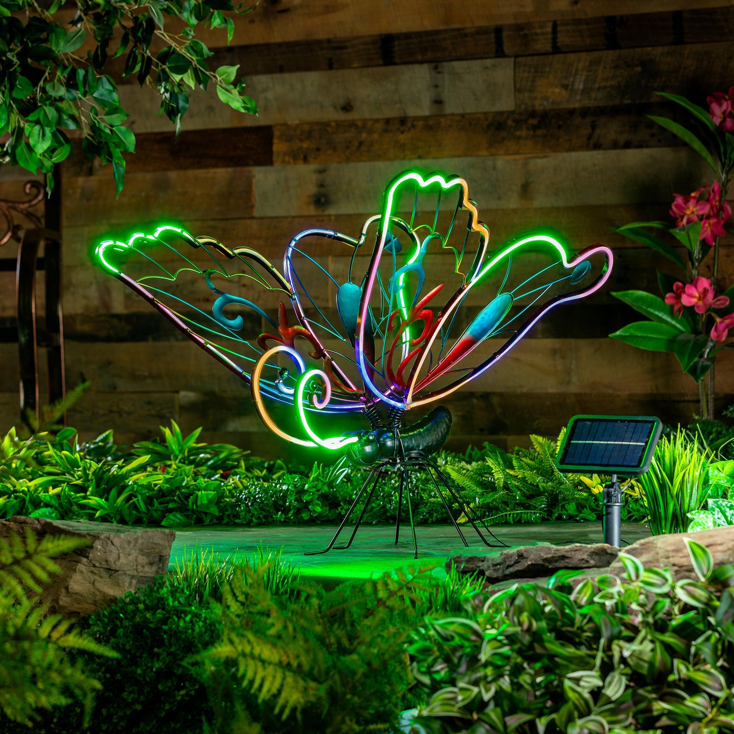 - Solar Neon Butterfly Garden Décor is a stunning addition to any garden or yard
