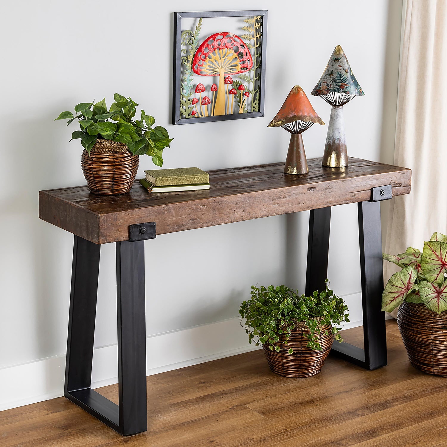- Oversized mushroom statue brings a magical look to your space
