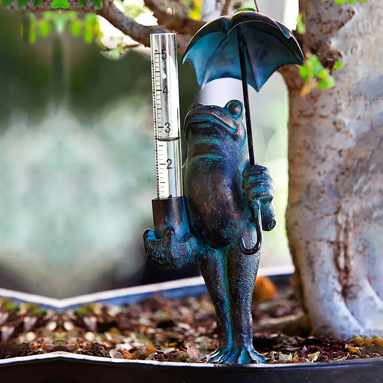 For those who want to know how much rain sensitive plants are receiving or for those who just want a cute garden accessory, this frog rain gauge is perfect for you. The frog, standing at attention underneath a miniature umbrella, is colored black with tinges of teal. In his right hand, a rain gauge, measuring up to 5 inches, firmly rests in his palm. How cute! Buy one today!