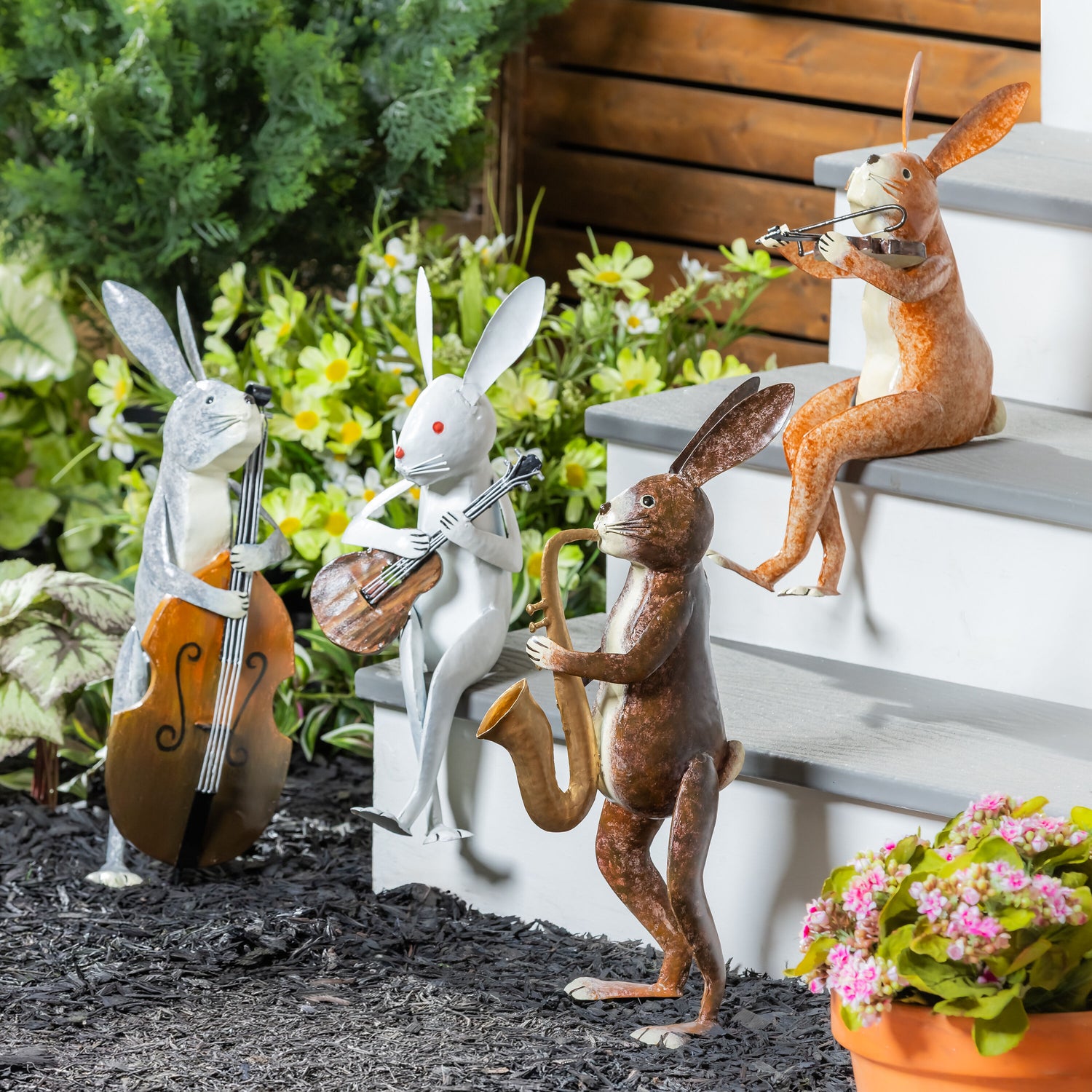 Transform any garden into a captivating outdoor gallery with this statuary set. It features an adorable group of rabbits that are ready to whip out their instruments and play all day. Our statuaries help merge nature’s beauty with art to create a timeless and enchanting space. This set is made from durable materials, so it’s outdoor safe and weather resistant. It makes a great gift for anyone who loves to spend time outside and wants to turn their garden into a beautiful oasis.