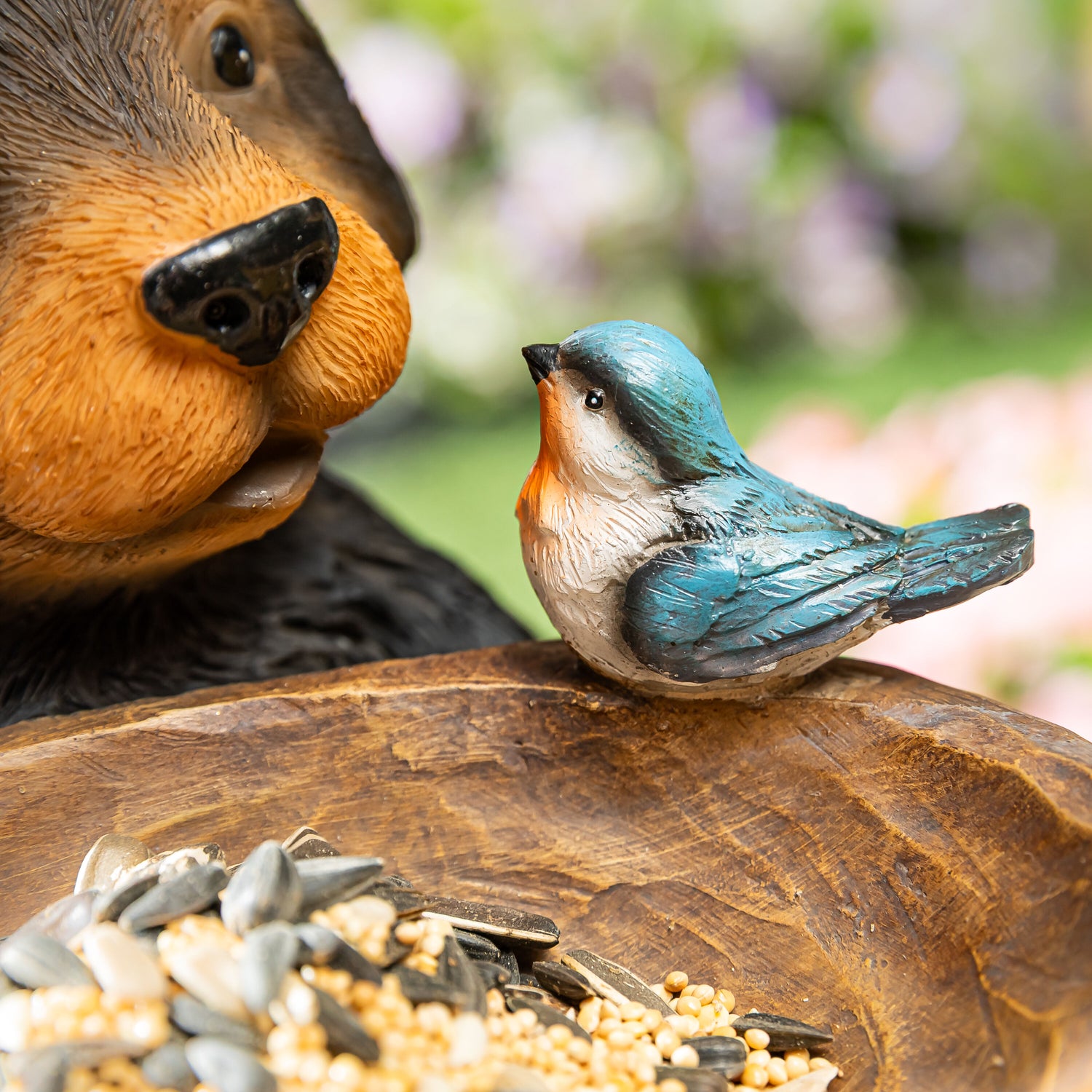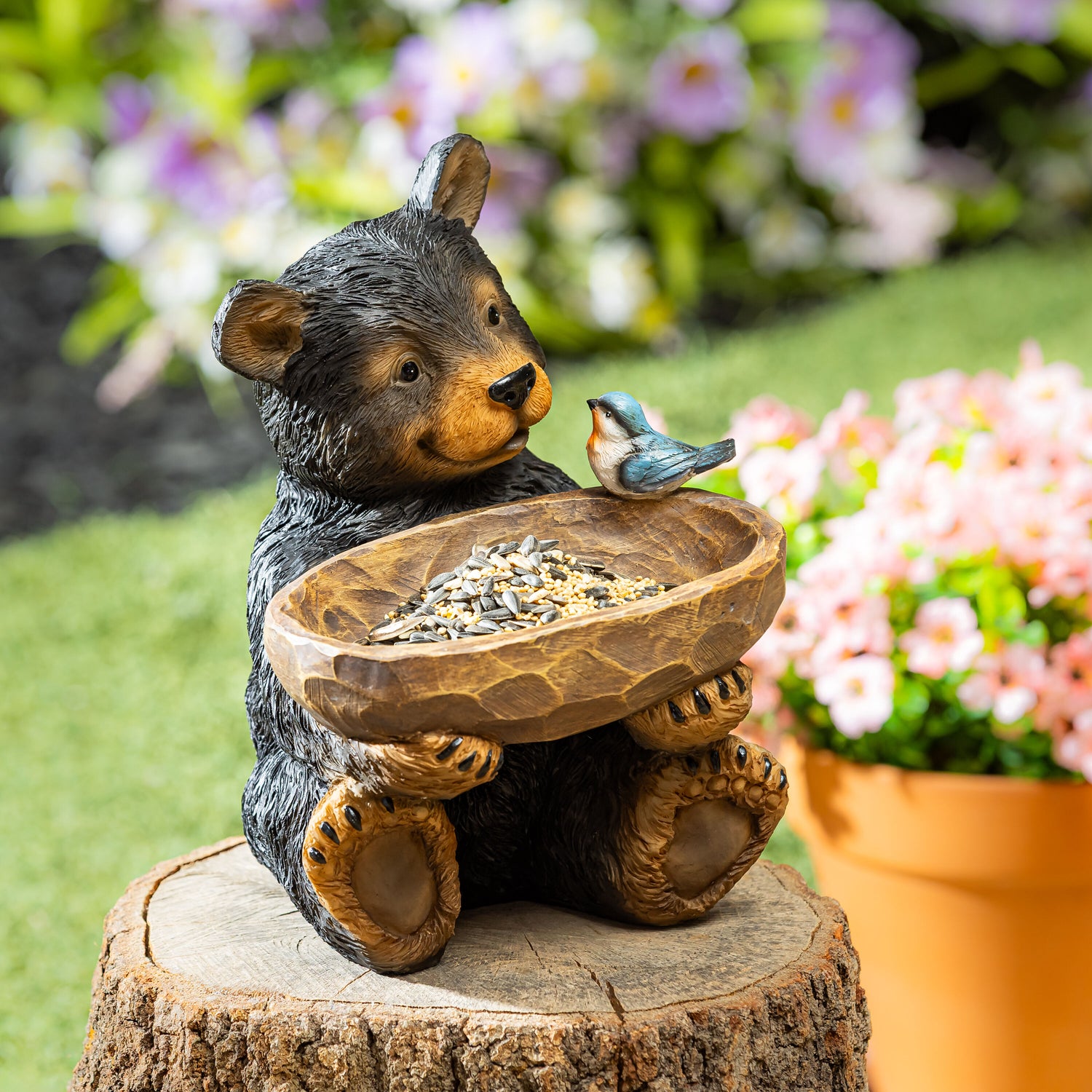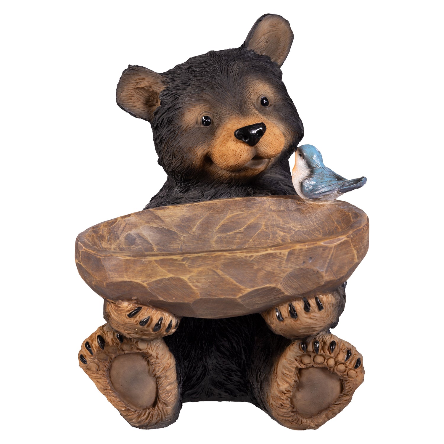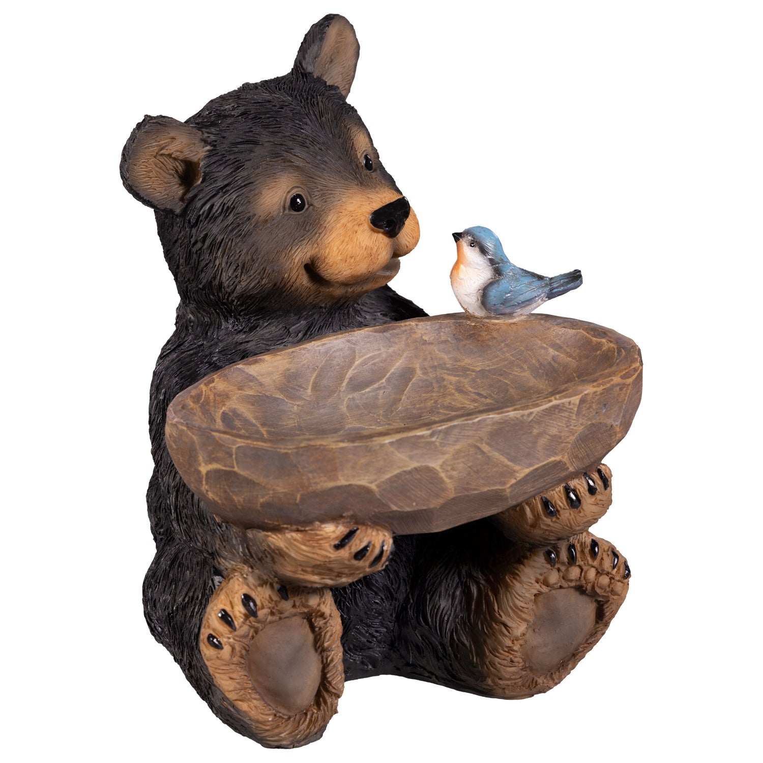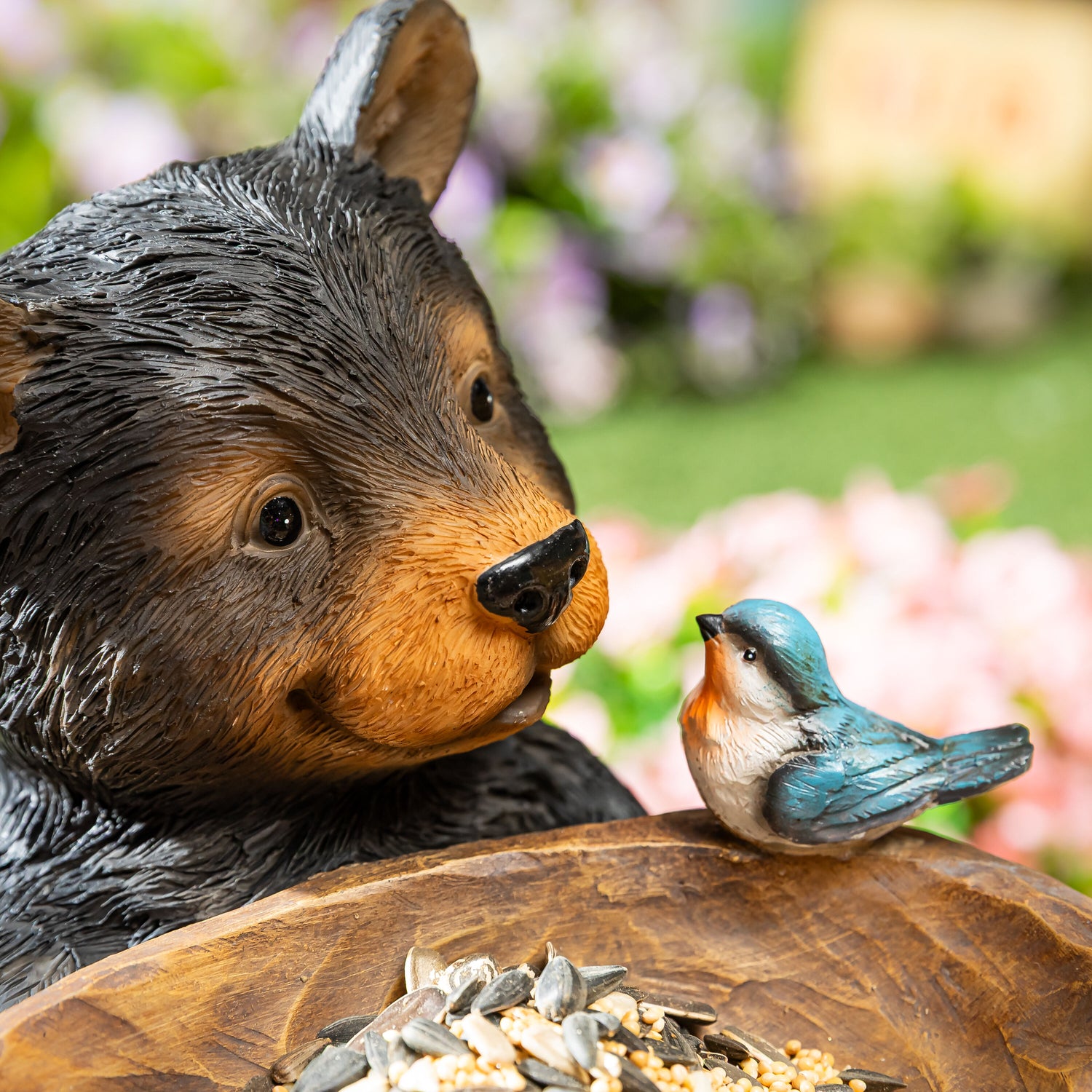 This delightful birdbath features an adorable black bear holding a textured “wood-look” basin, complete with a friendly bluebird perched at the rim. Crafted from durable, weather-resistant resin with hand-painted details, it's the perfect way to add a touch of personality and playfulness to your outdoor space.