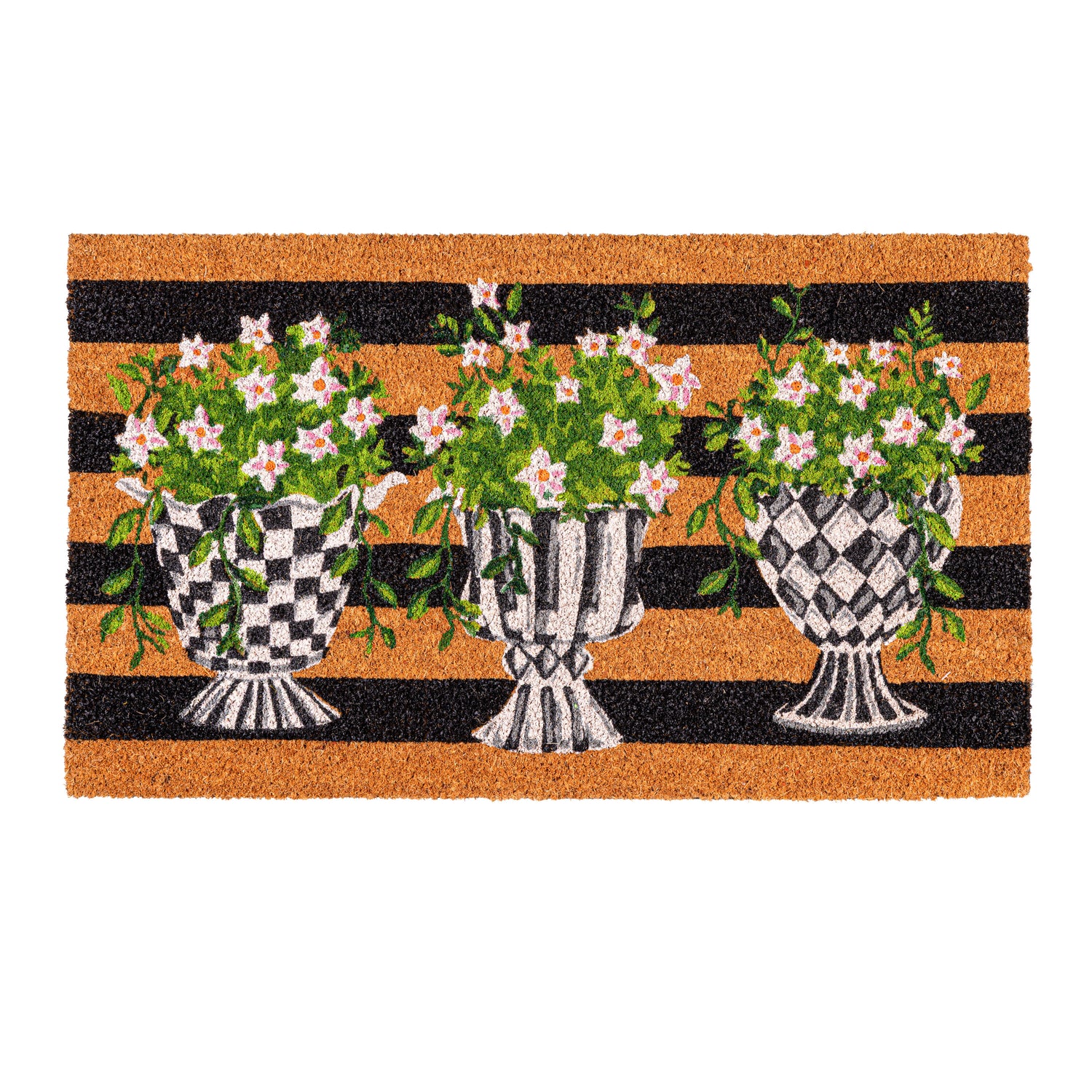 Sweep guests off their feet with our beautifully made coir mats! Made with vibrant pops of color that are perfect for the season, this mat will put pep in anyone's step. Crafted from coco husk fiber, the eye-catching mat is natural and eco-friendly. Ideal for high-traffic areas, the mat traps dirt and debris to prevent messes from being tracked into homes. Designs are printed directly on the mats with fade-resistant dyes. Since the mat is crafted from natural coir, some shedding is to be expected. Shake off excess fibers or use a soft brush to gently sweep.